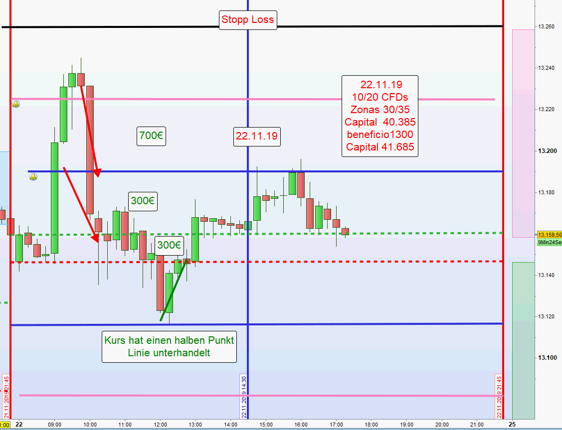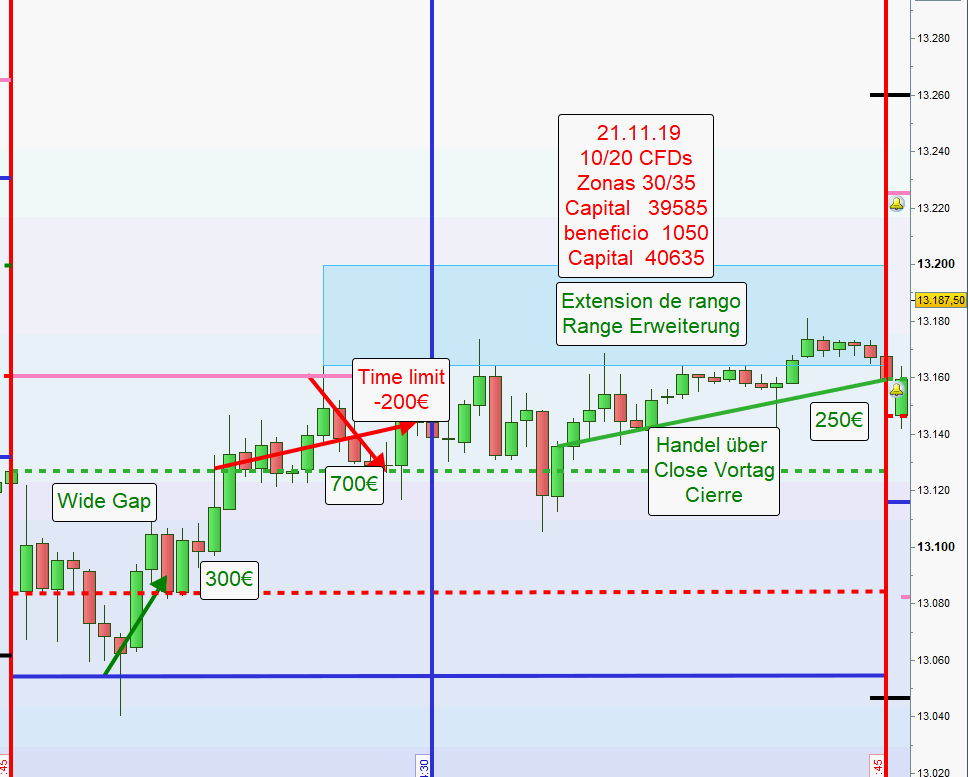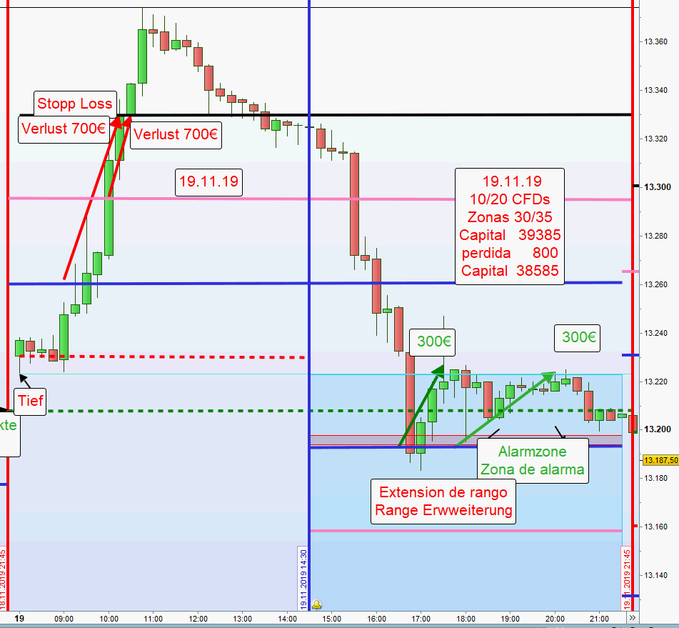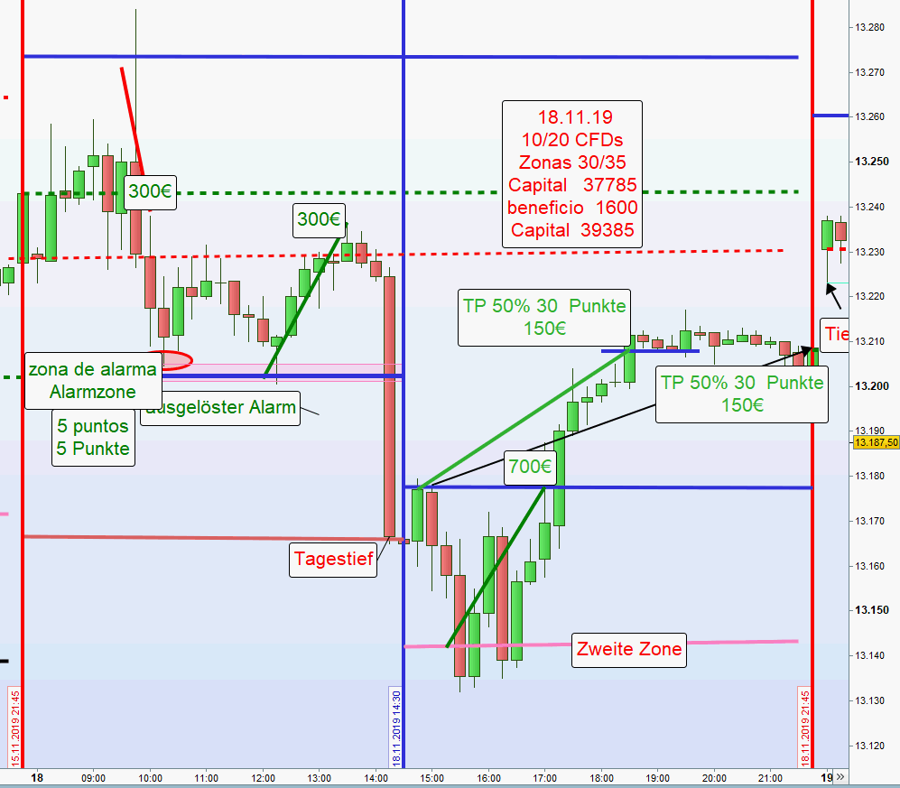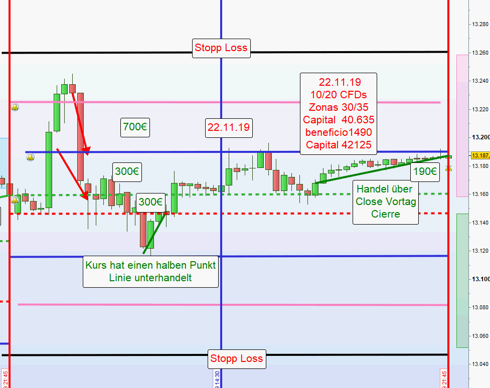 Bei einem Verlust-Tag wurde insgesamt ein Ertrag von 4340€ erzielt. Dies erlaubt ab Montag die CFDs auf 15 und 30 zu erhöhen.