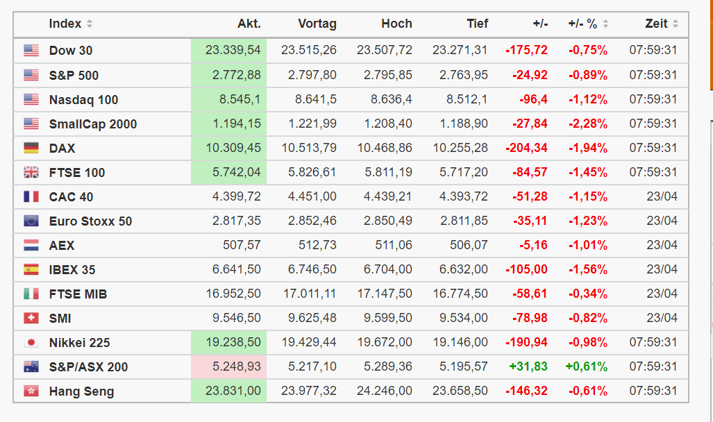 Heute liegt ein Doppel Gap von 213 Punkten vor und die Futures notieren sehr negativ.