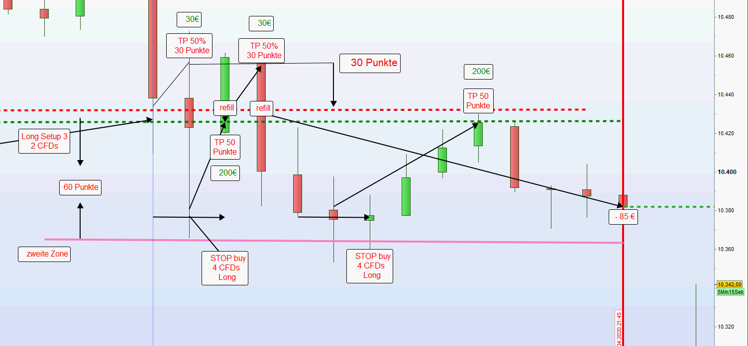 bei sofortigem Rücksetzer durch Stop Order auf. Bei einer Zonenweite von 60 Punkten sind 10 Punkte Differenz OK.