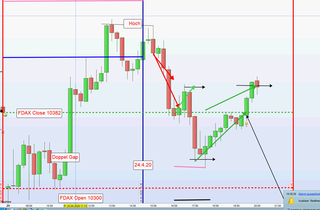 Setup 4.Handel in Richtung Eröffnungskurs. Short und Long