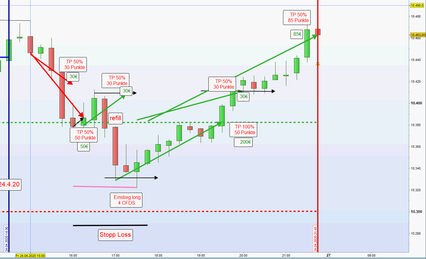 Zuweilen ergibt sich nachmittags die Möglichkeit mehrere Setups in Folge zu handeln