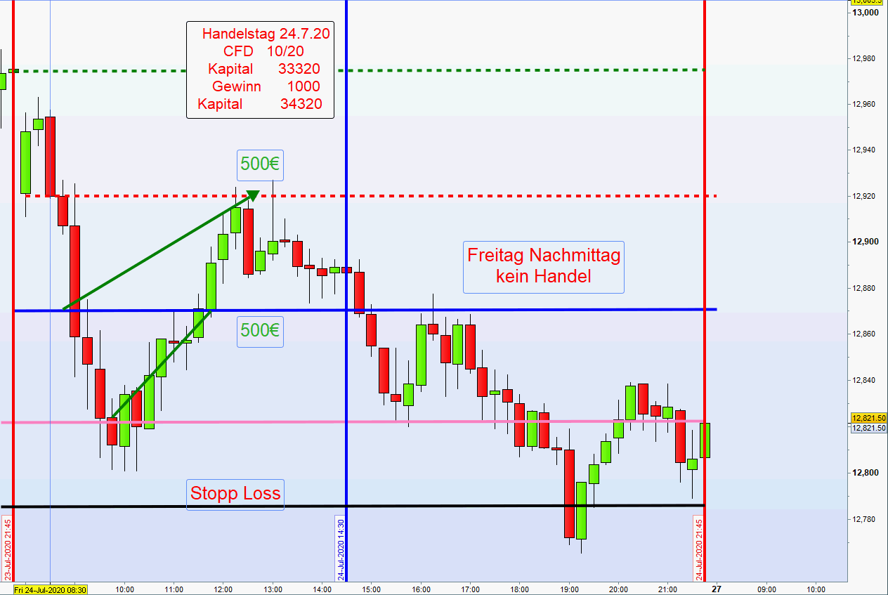 Eine gute Woche ohne Verlusttage mit erhöhter CFD Stückzahl von jetzt 7 und 14. Kapital nun 25.845€
