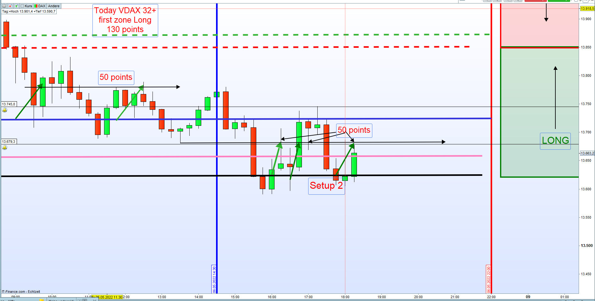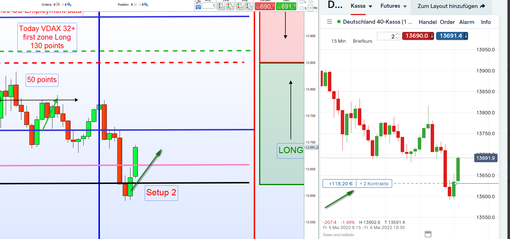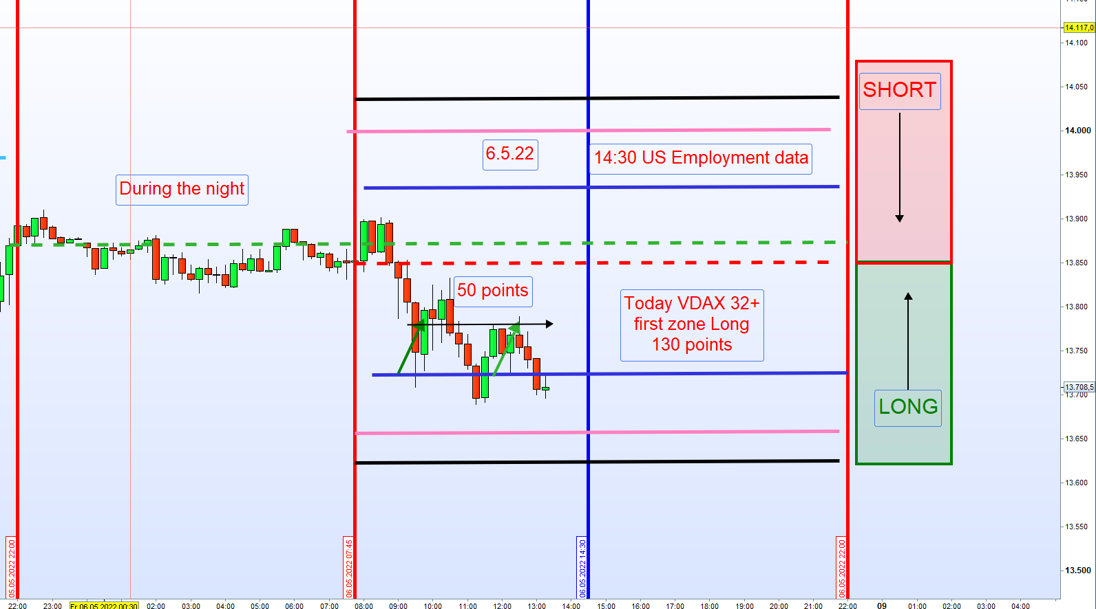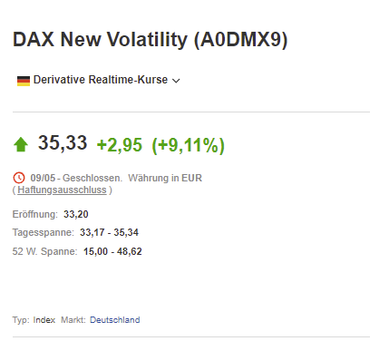 Richtig, gestern schloss VDAX über 35. Heute morgen jedoch war Tendenz vorbörslich schon Long und dann ist auch zu erwarten, dass der VDAX unter 35 rutscht. Komme noch auf den Tag zurück. Eingeblendet Futures vor 8:00h