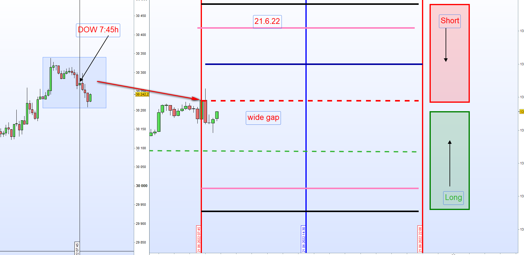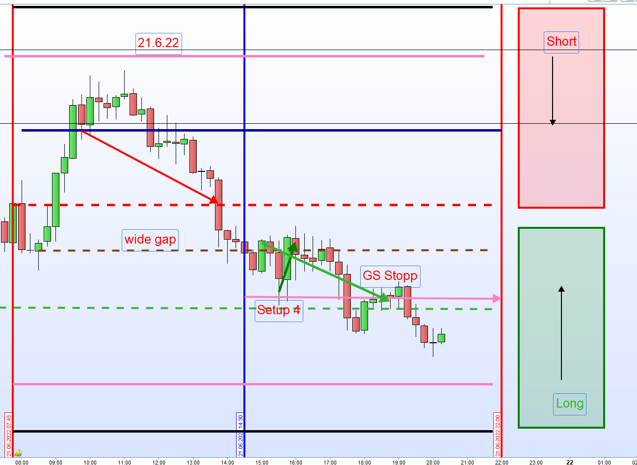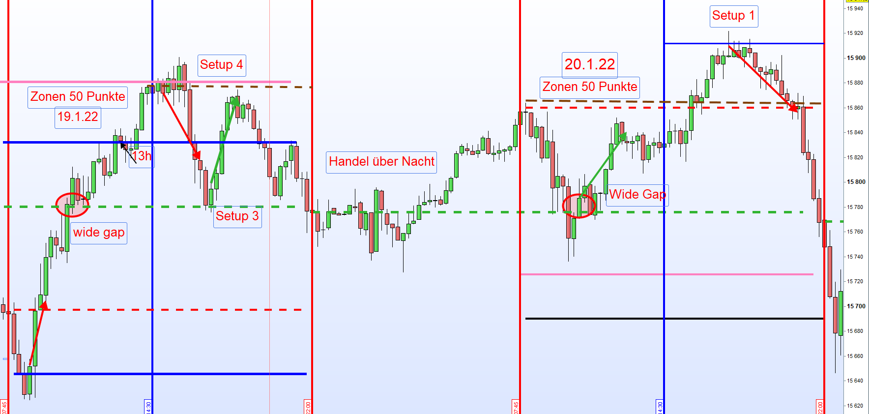 PS: Wobei die Range mit den Dochten bereits 119 Punkte beträgt und es vermutlich nicht auf einige DAX-Punkte ankommt, hatte ich mir mal notiert gehabt, so dass man die Linie für Setup 4 bzw. für die Range Erweiterung auch niedriger einzeichnen könnte. -