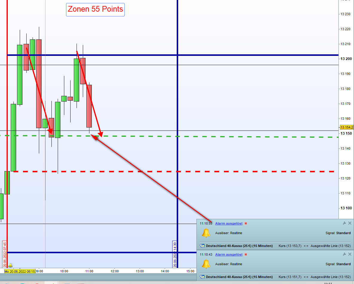 Und dann die Zonen auf 55 Punkte einstellen kurz vor 9h.