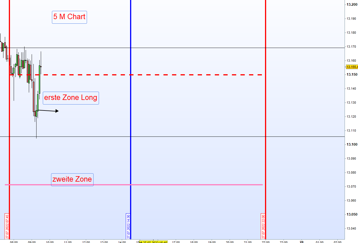 (1.) Sofortiger Einstieg Long um 8:00h, wenn DOW Futures und FDAX positiv notieren (also beide im PLUS!)