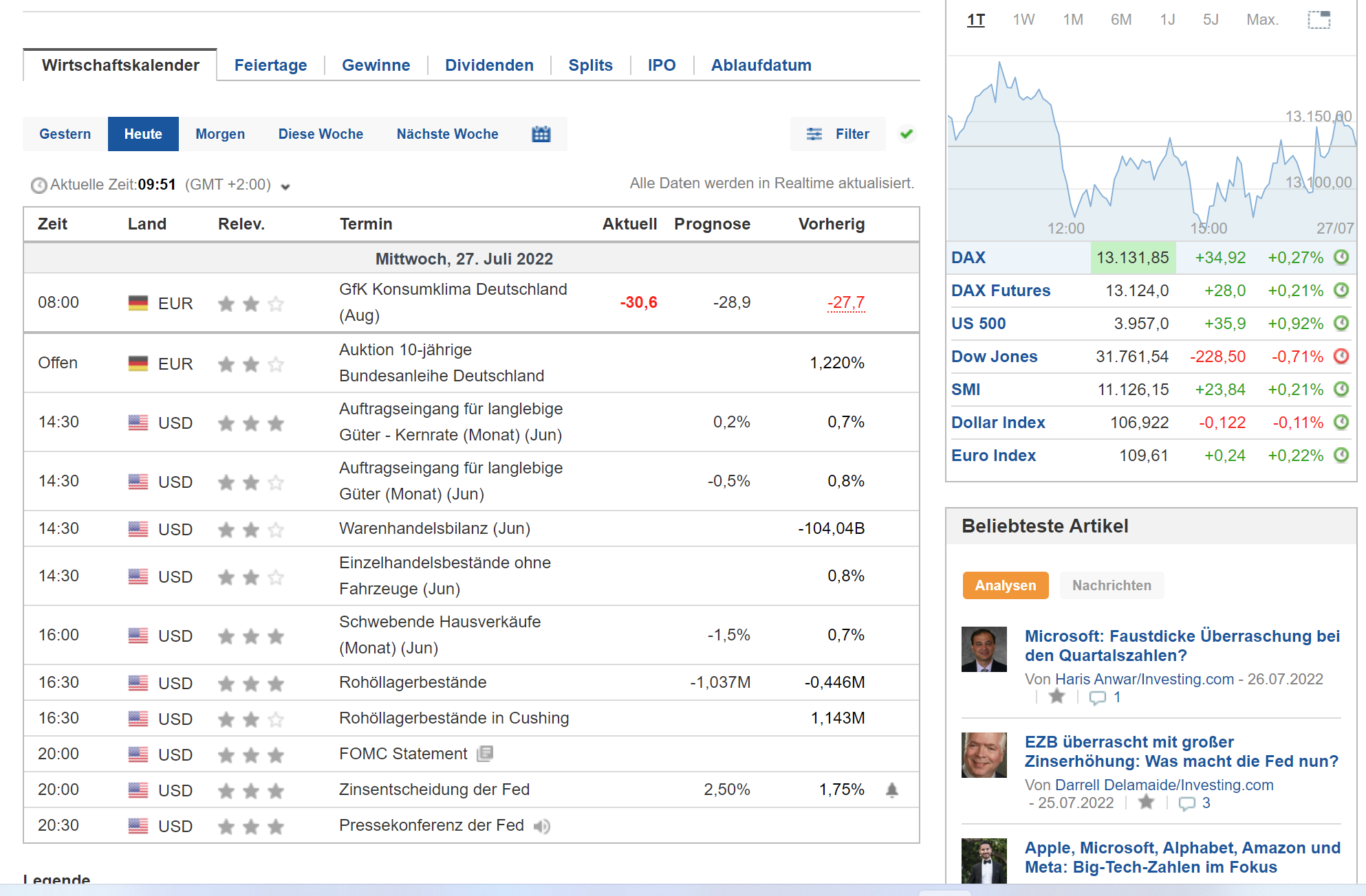 Heute ZEW und FED. Futures im Plus. Es wird spannend