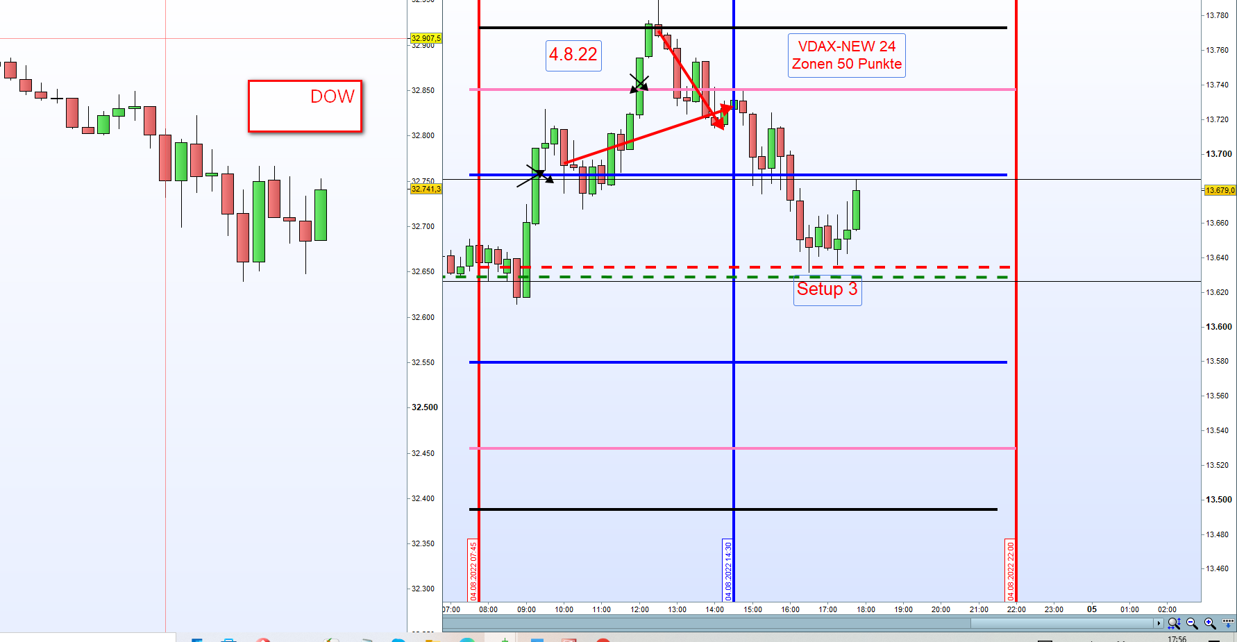 Hier wäre man mit einer Position Short an der gestrichelten Setup 4-Linie eingestiegen als Ersteinstieg und der Ersteinstieg ist immer die Zone 1.