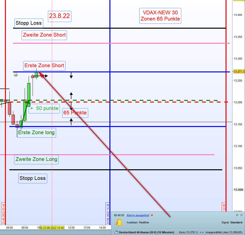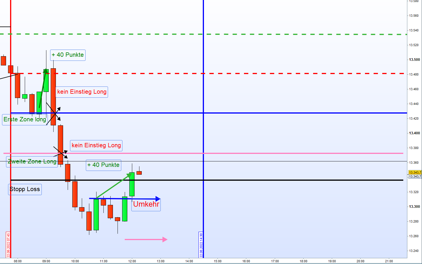 - Bei der Zone 2 war es wahrscheinlich nur Glück. Kurs dreht bei 13370 nochmal bis 13390 nach oben und fällt dann weiter durch, somit auch hier nicht ausgelöst.