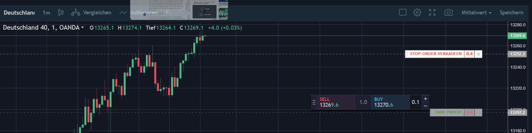 - Gegen 09:25 ist der Kurs wieder Richtung Zone 1 dahier keinerlei Umkehr stattgefunden hat wurde die Order nicht ausgelöst. Habe alarm 5 Punkte drüber und plaziere dann Order auf 5 Punkte drüber (also 13417 und 13427)