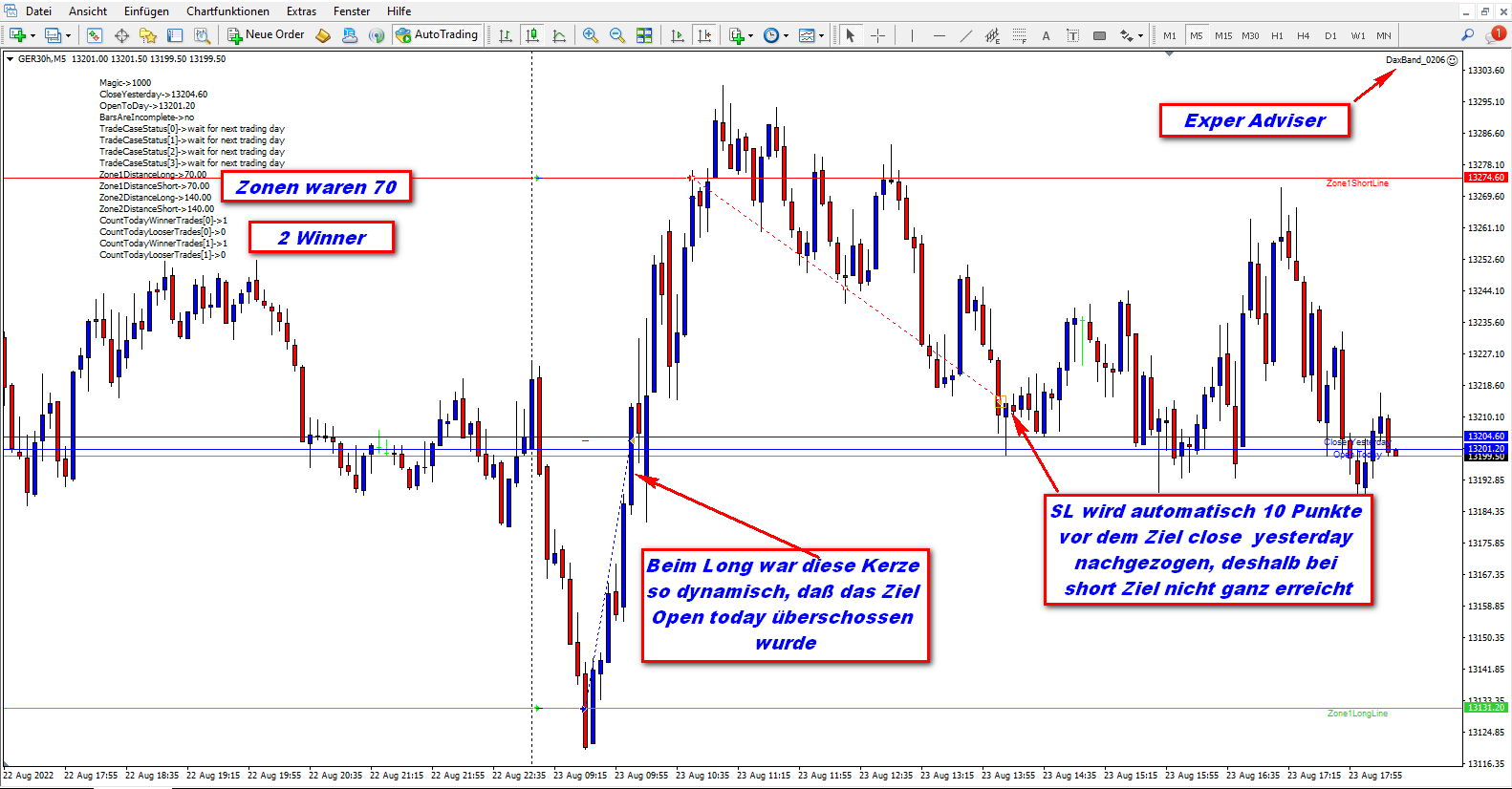 Mir ist schon öfters aufgefallen, dass der Kurs unter der Zone1Long umdreht und dann aber auch 100 Punkte oder mehr hoch geht. Zieht ihr das Konzept mit den Zonen strikt durch oder wendet ihr hier auch teilweise Trailing Stops an?