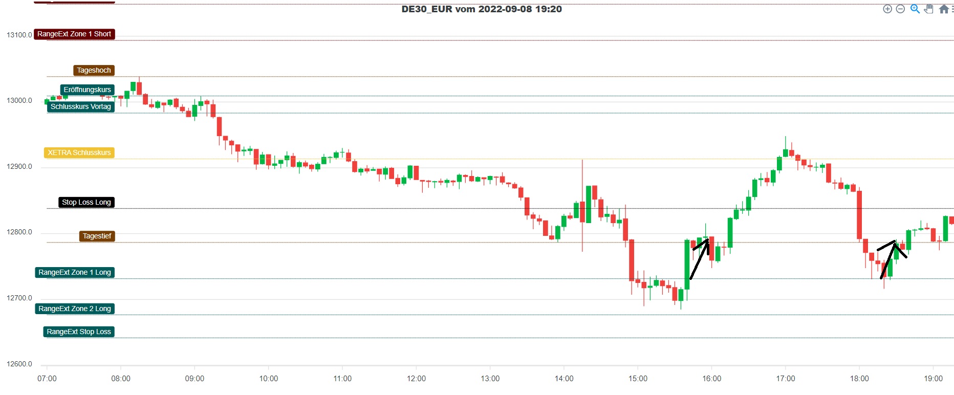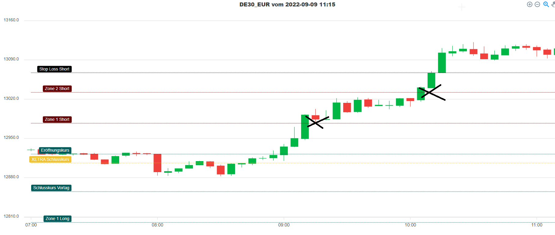 - Mein Original Chart. An beiden Zonen wurde die Order gemäß Regeltext nicht abgeholt. der Dax ist wie an der Schnurr gezogen nach oben.