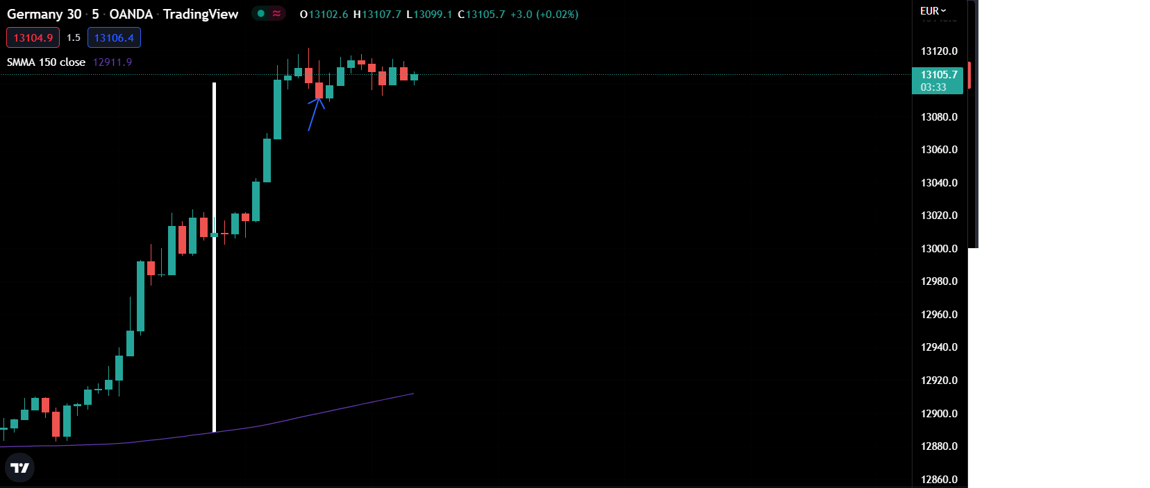 heute morgen hatte ich nicht gehandelt, aber bei mir im 5M Chart sieht es so aus. (Mini-DAX)