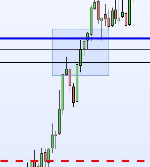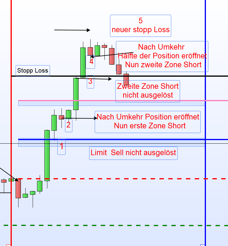 Wobei ich gerade überlege, die 1. Zone wird bereits erweitert und wir steigen schon abweichend höher ein nach z.B. einer UKK und dann steigt der Kurs weiter ununterbrochen und wir steigen dann wiederum nach einer Umkehr, z.B. einer UKK abweichend höher ein