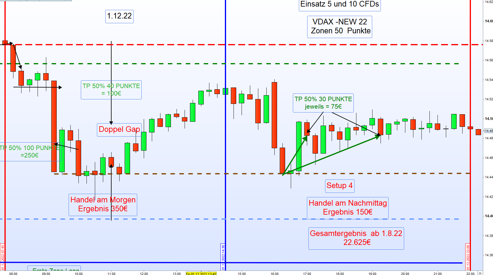 Und ich bin gerade wieder an dem PC zurück und wieder mal beindruckend, wie gut die FDAX-Strategie funktioniert hat, ein Setup 4 erfolgreich nach diesem Kurs-Sturz ab 14:30h!