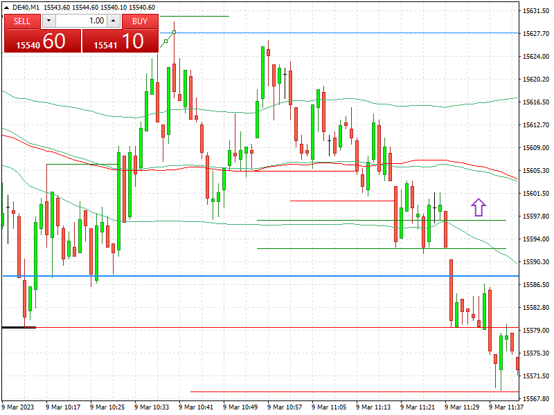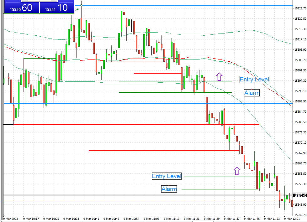 Selbst diese Bedingung ist erfüllt. Nach 11:20 (Alarm ausgelöst) schlossen wenigstens 5 M1-Kerzen über dem Entry-Level. Siehe Chart weiter unten.