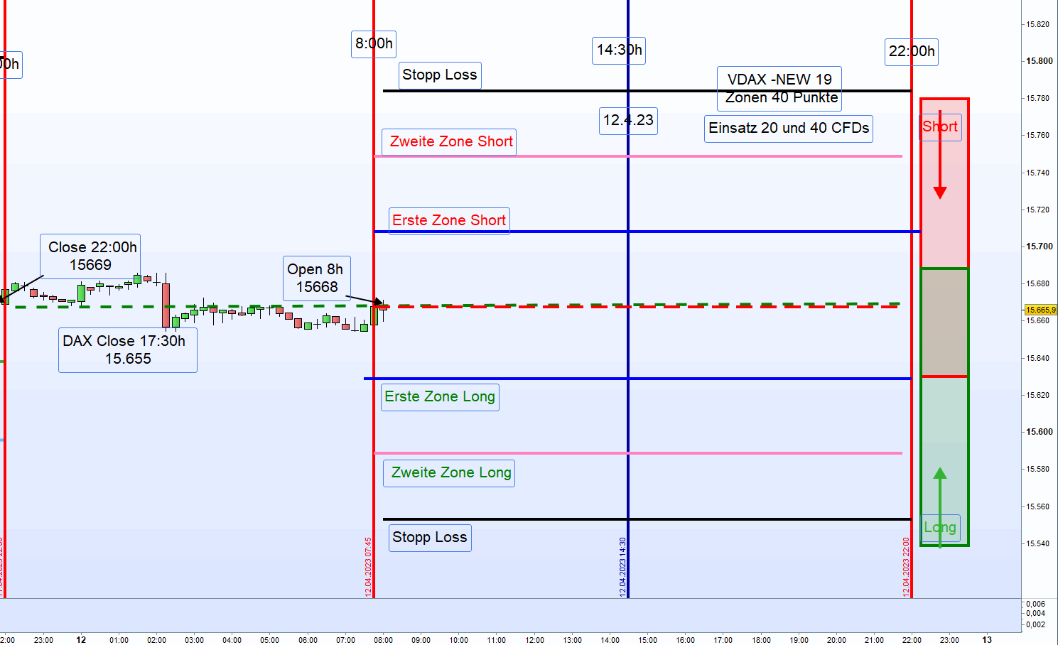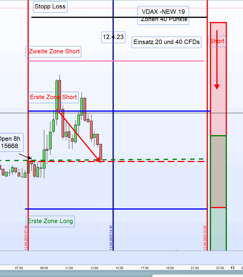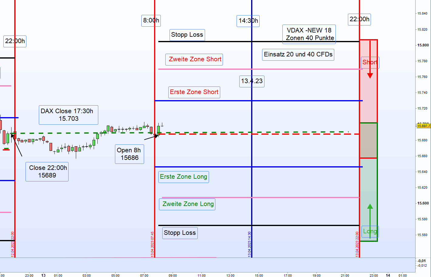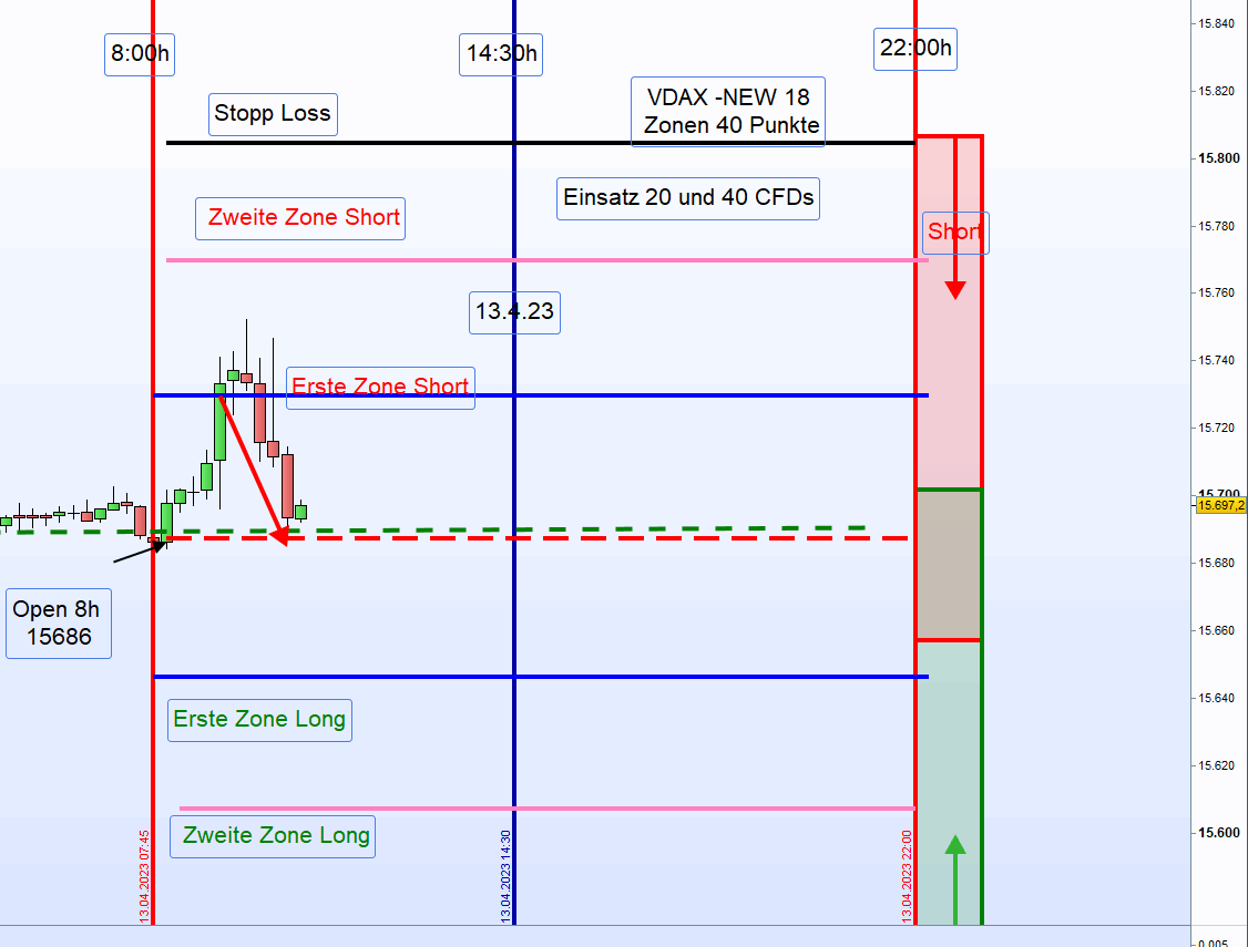 Maßgebend für den Einstieg ist die Linie die sich an dem höchsten/tiefsten abgeschlossenen 15M Kerzenkörper orientiert und nicht an dem Docht/Schatten. Der Einstieg kann auch an der Mindesthandelsspanne für den Handel am Nachmittag beginnen.