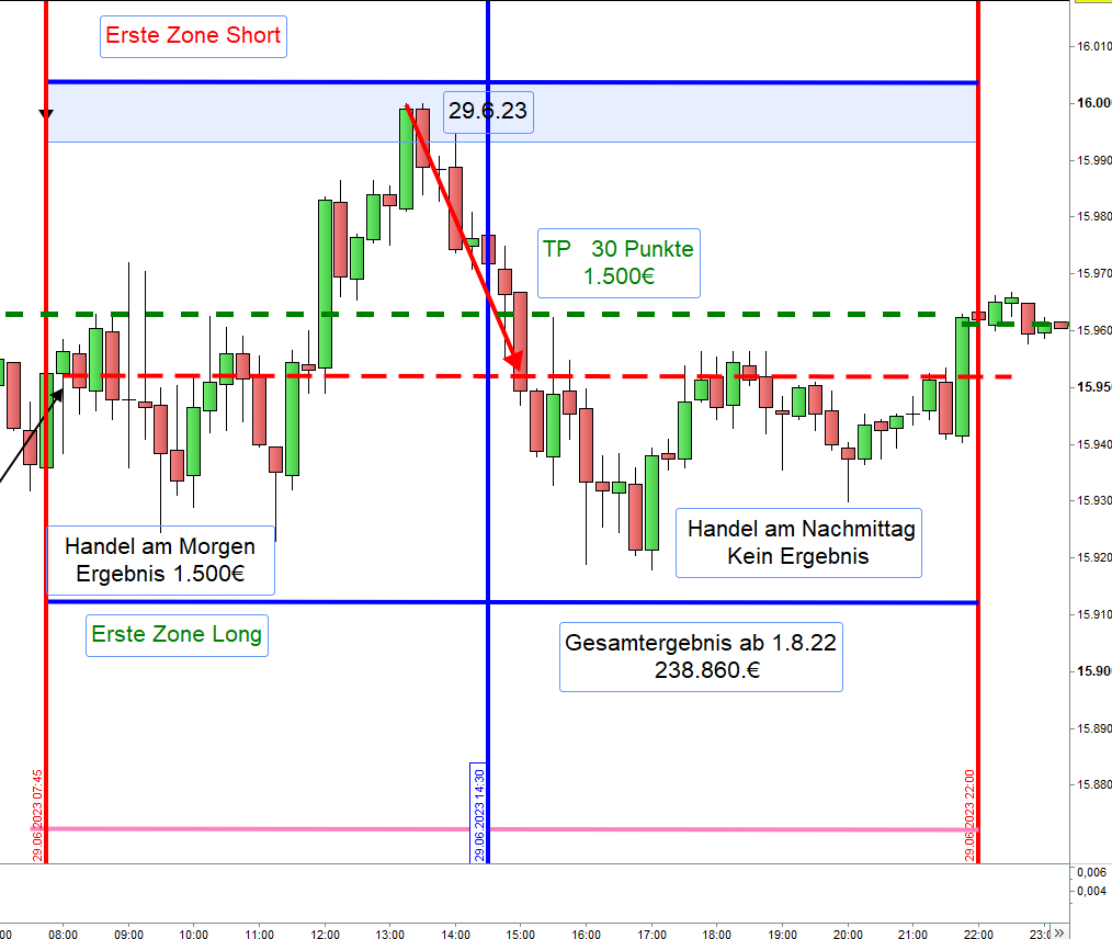 3. Entweder Kurs erreicht die 16000 und die Order wird ausgeführt oder die Zone wird durchgehandelt