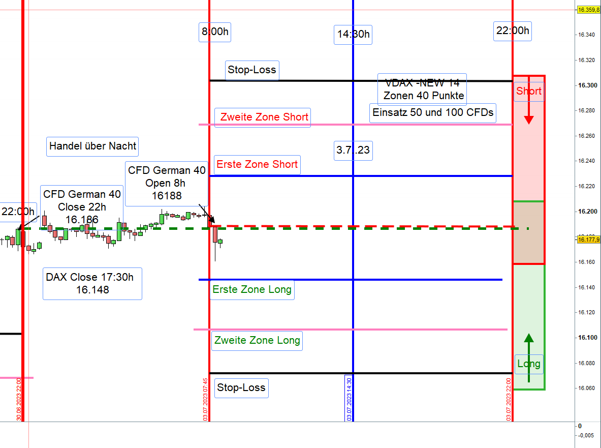 Kein Handel unter bestimmten Bedingungen: Wenn der VDAX-NEW über 30 notiert, werden vor 9:00 Uhr, Eröffnung XETRA-DAX, keine Positionen eröffnet (Seiten 16, 19).