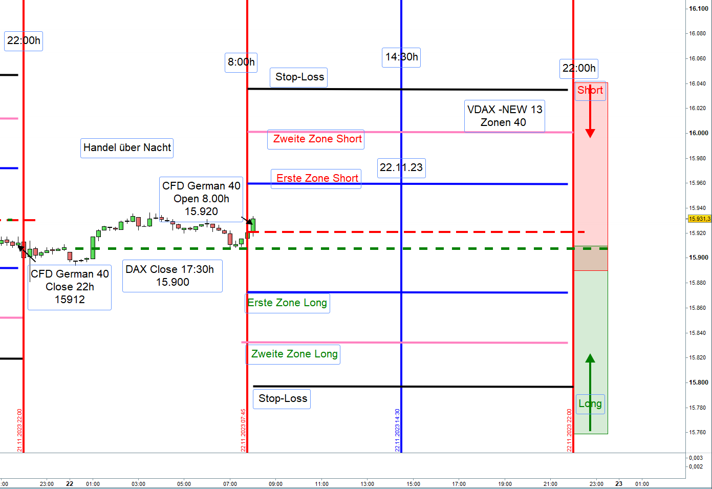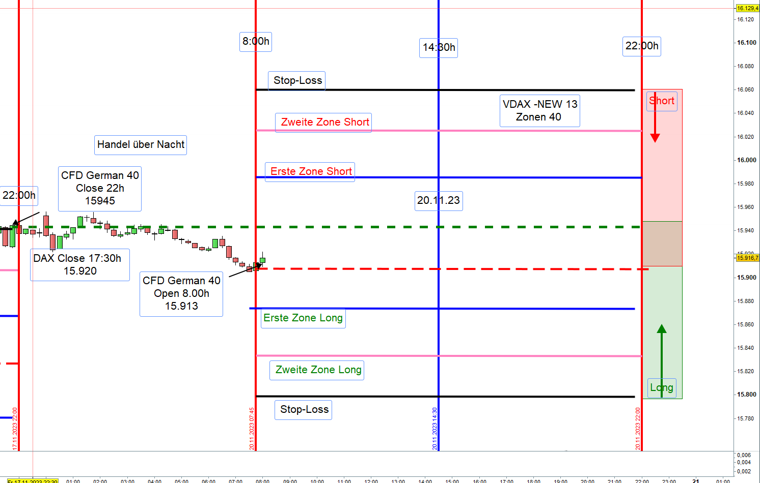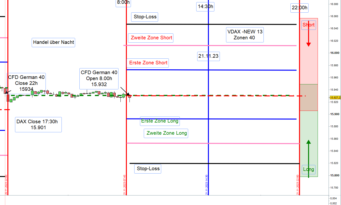 Ich werde diese Anpassung noch begründen. Der Handel am Nachmittag kann bei einer VDAX-Notierung unter 16 auch schon mit einer Handelsspanne von 80 Punkten beginnen.