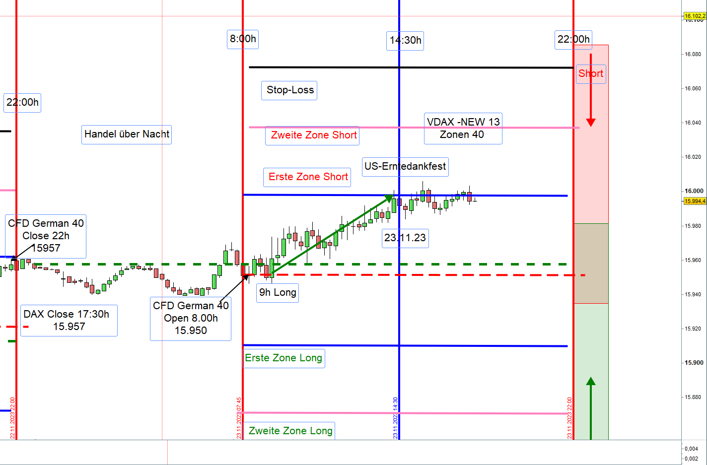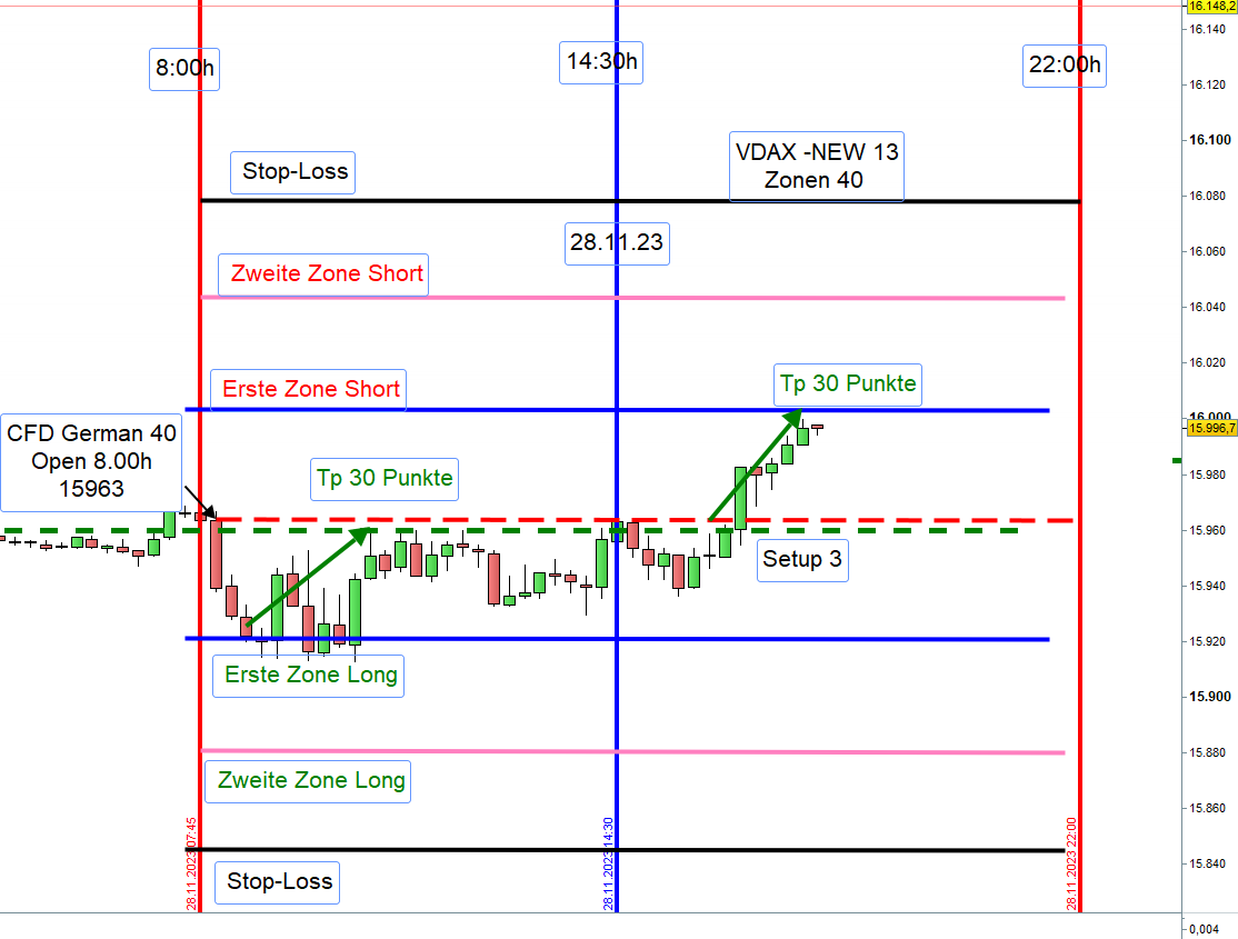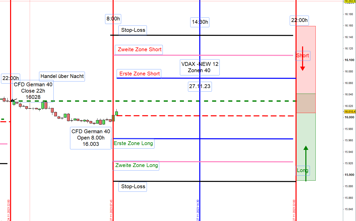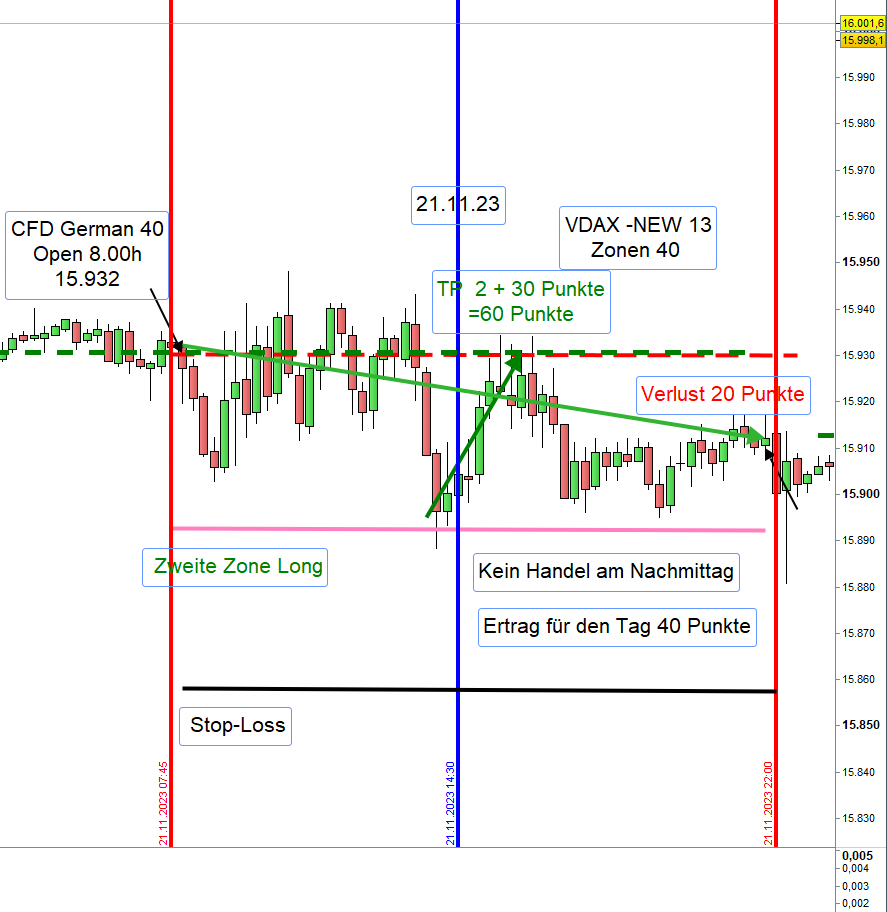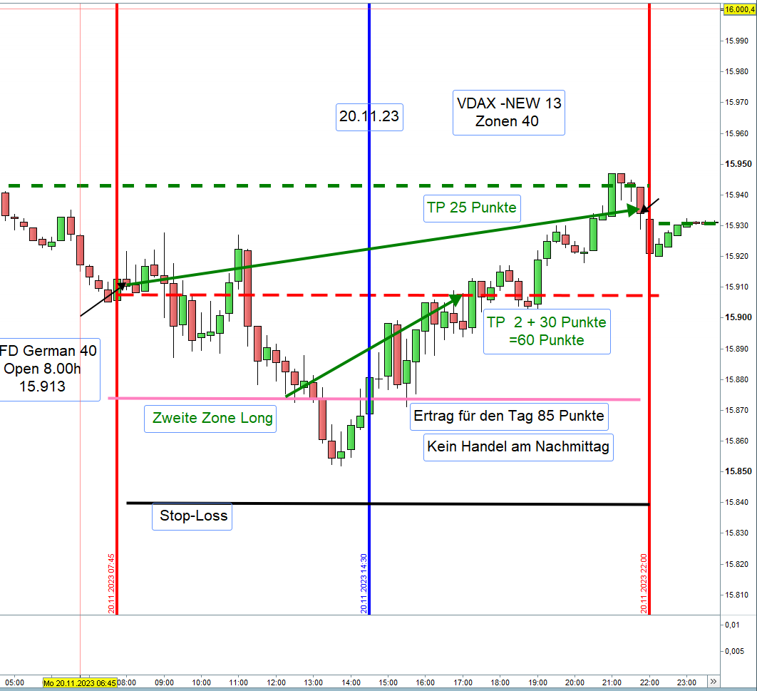 Wird nach Eröffnung einer Position der Kurs bis zur üblichen ersten Positionen Long, also 30-40 Punkte unter dem Eröffnungkurs gehandelt, wir diese dann zur zweiten Zone Long. Stop-Loss 35 Punkte darunter.