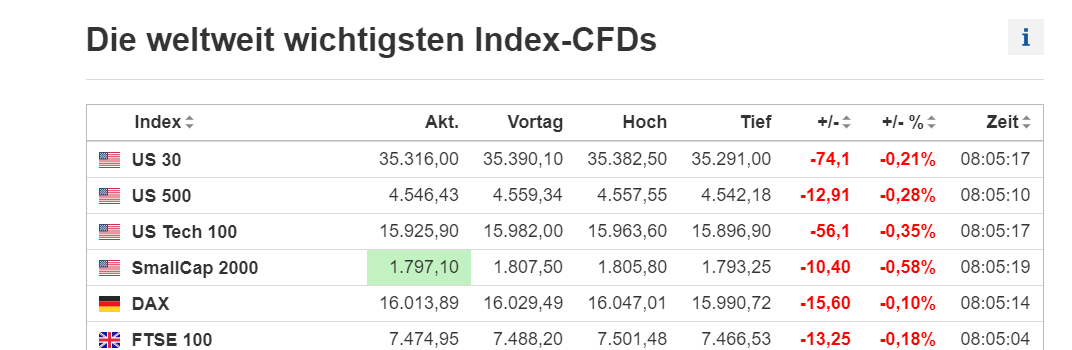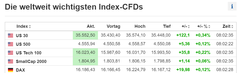 Ab 8h wird eine Long-Position eröffnet. Voraussetzung: Index-CFDs DOW und DAX müssen zu diesem Zeitpunkt positiv