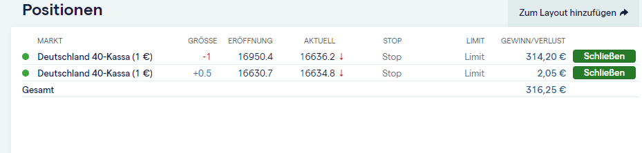 Ausgenommen Setup 3 Offene Positionen vom Vormittag, insbesondere aus den zweiten Zonen, sollten a priori abgewickelt werden.Dieser Beitrag wurde bereits 1 mal editiert, zuletzt von „GeorgM“ ()