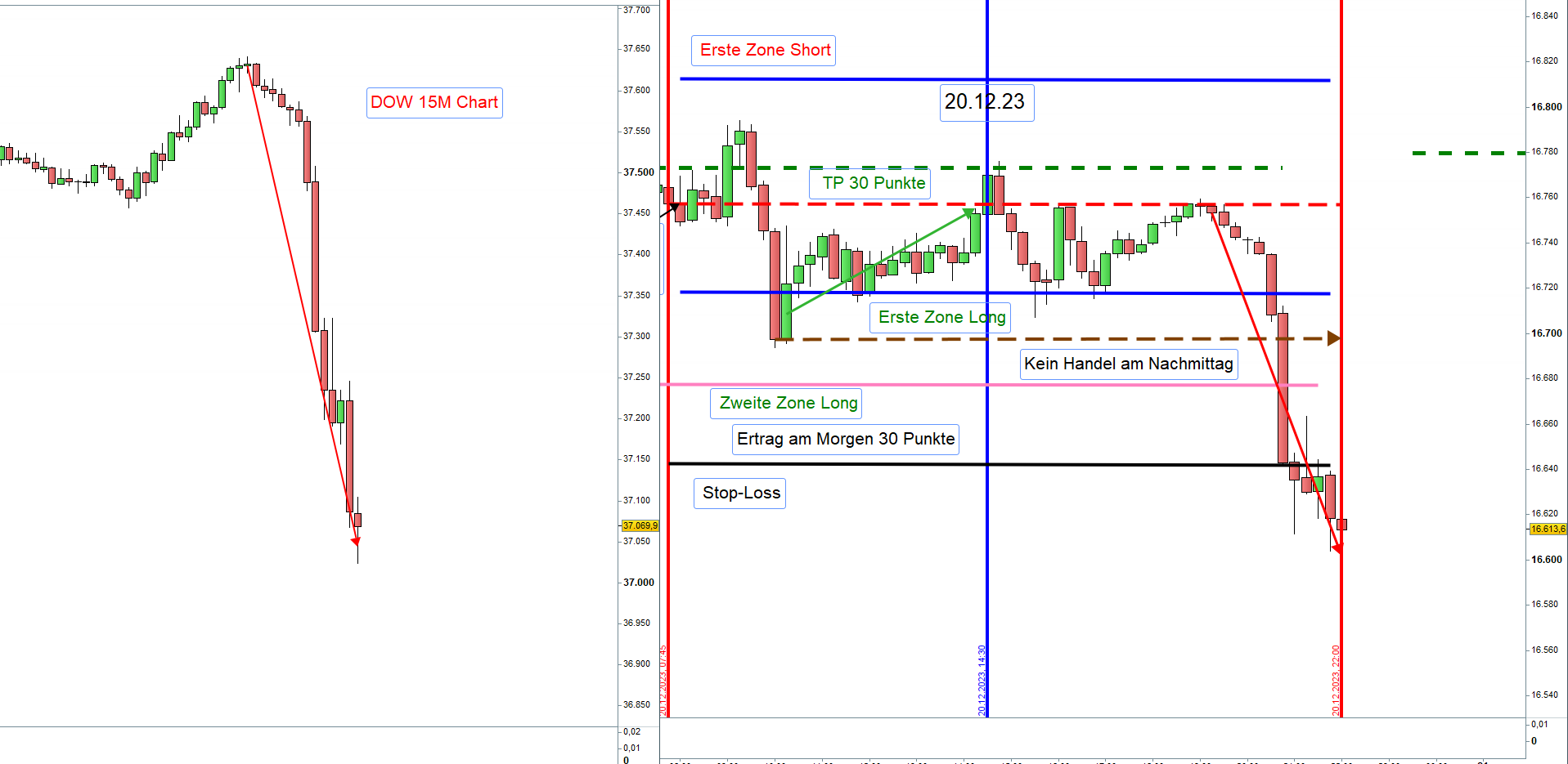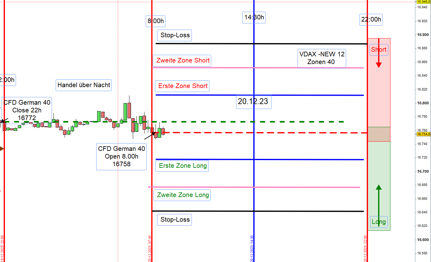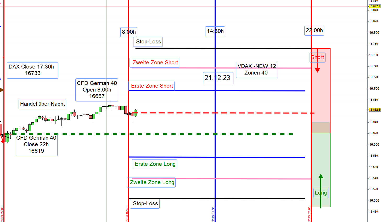 Wenn man da jetzt wirklich ein Setup 4 handeln möchte, macht es nur Sinn die Spanne von 100 Punkten zu "projizieren". Die wäre dann bei ca. 16642 - das wäre dann die zweite Zone Long vom Vormittag....