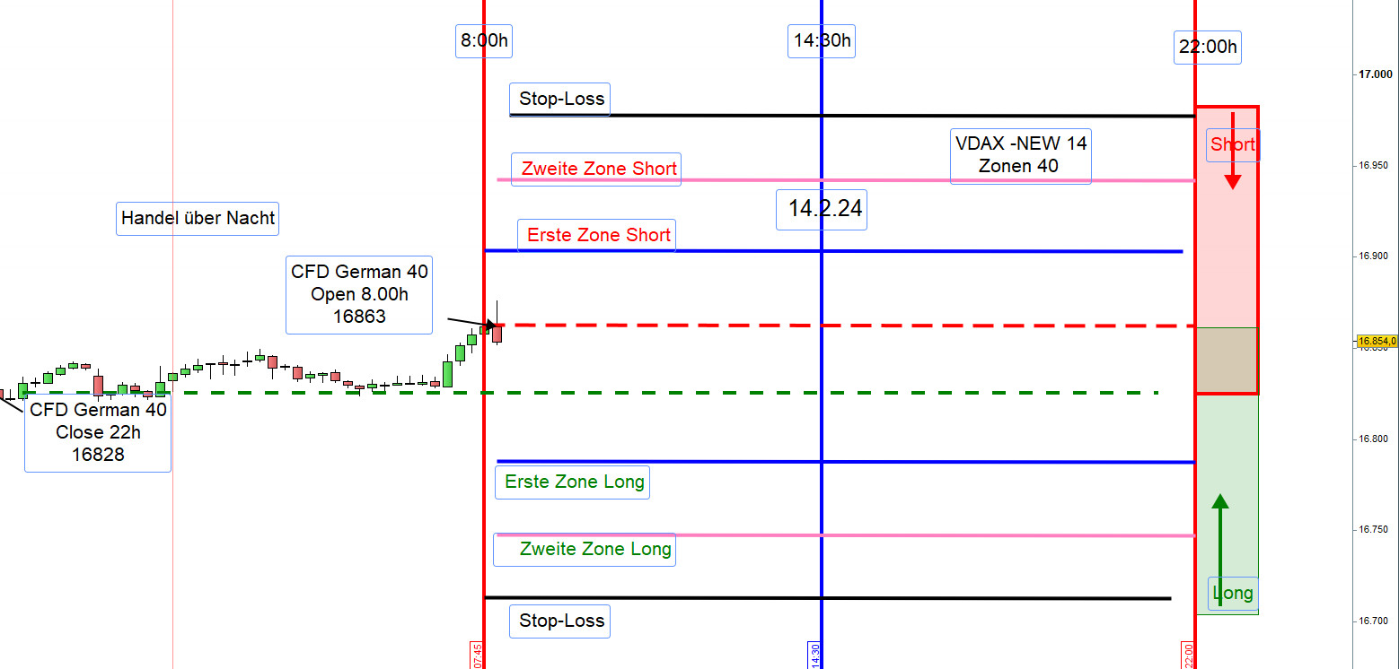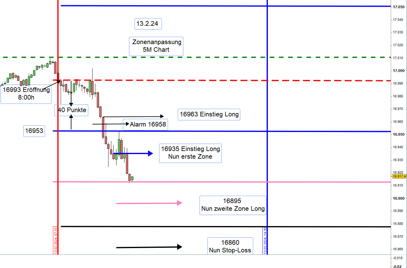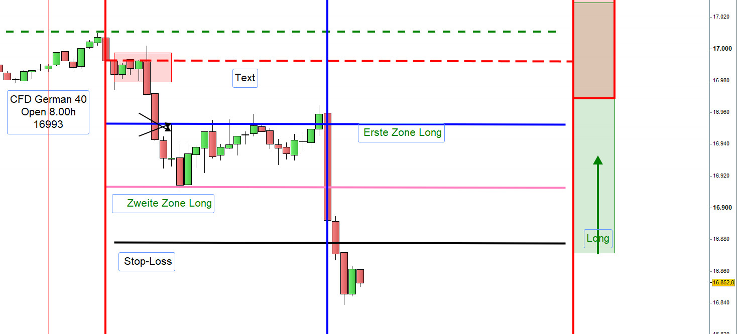 Augenmerk liegt auf der Entwicklung von DJIA FUT über Nacht und der Eröffnung XETRA-DAX um 9:00h.Trotz aller Sorgfalt kann man Verluste nicht gänzlich verhindern jedoch wesentlich verringern, und zwar durch Anpassung der Aktionszonen.