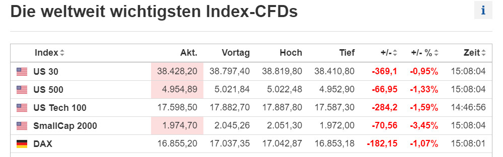 Nachdem meine hübsche lateinamerikanische "Raumpflegerin" mit kanevalistischen Sambaeinlagen wieder weg ist, muss ich darauf hinweisen, dass alle US-Futures im Minus notieren und daher zurzeit auch kein Handel am Nachmittag stttfindet.