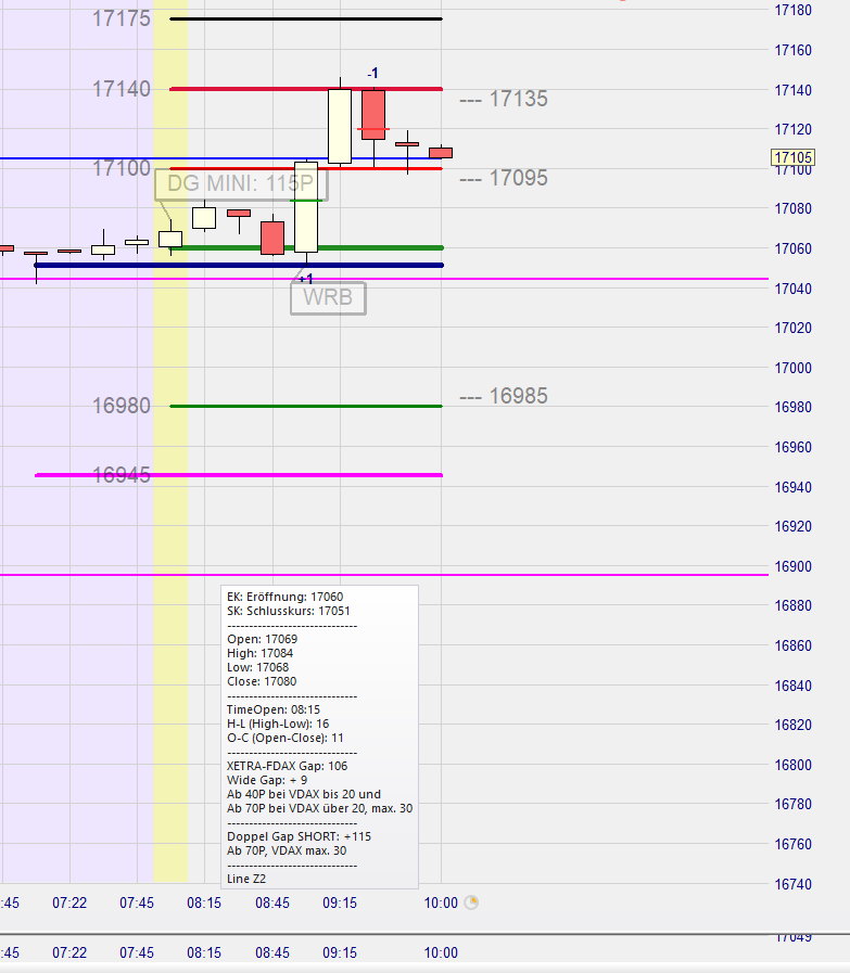 Um diese Uhrzeit ist ein Erfolg nur möglich, wenn der DOW in die gleiche Richtung tendiert. -
