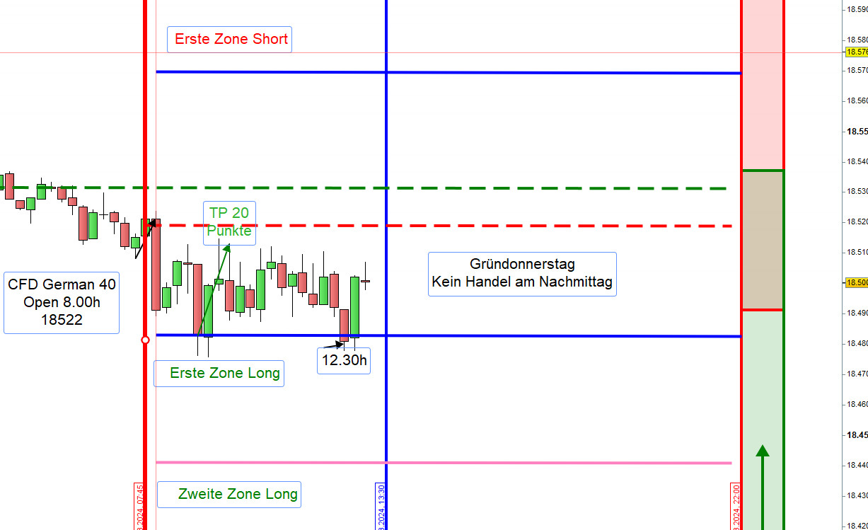 Es kommt in der Tat oft vor, dass der Kurs schon viel höher oder auch tiefer notiert als die Linie Stop-Loss dann muss zuerst durchgehandelt werden. Alternativ alle Einstiege am Nachmittag wie morgens für den Zonenhandel. -