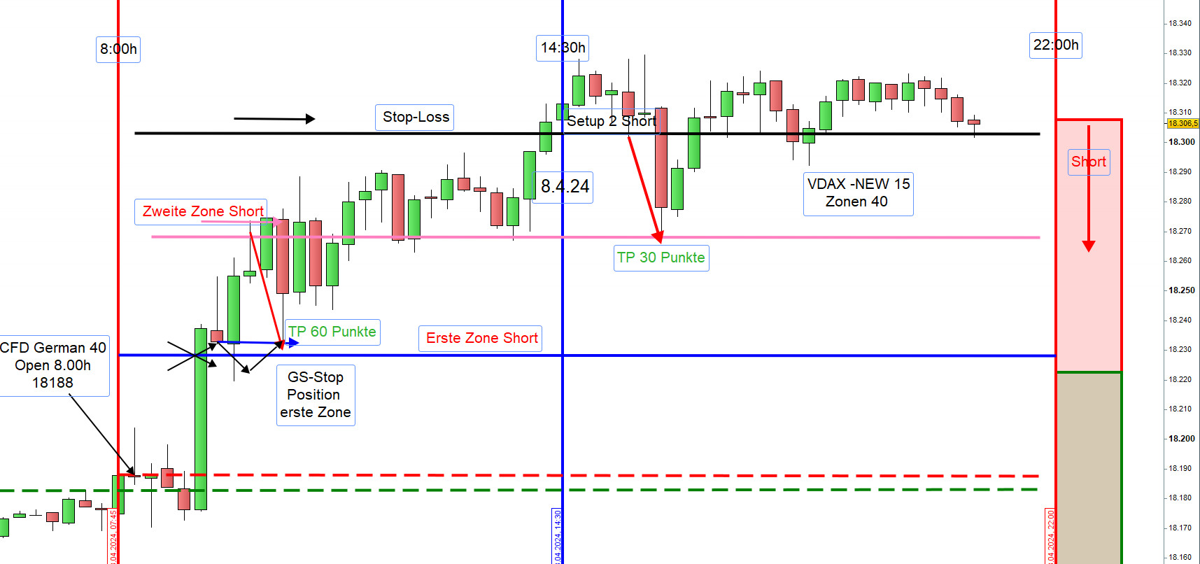 Je nach Volatilität erweitert oder verengt sich die tägliche Handelsspanne. Es erfolgt eine flexible Anpassung der Zoneneinteilung je nach Stand vom VDAX-NEW.