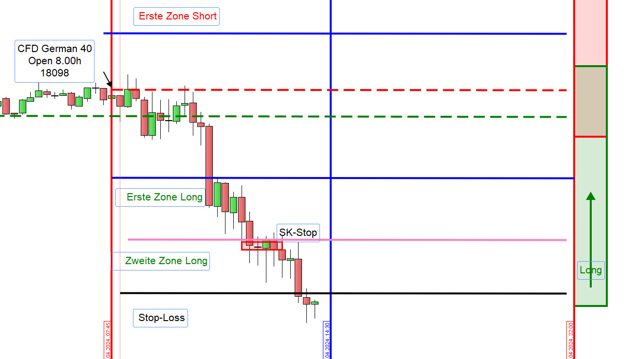 Sequenz der Eröffnung einer Position an der ersten und zweiten Zone mit Anpassung der Zonen.
