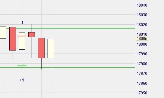 Die 1% Klausel für den Nachmittag spielt morgens keine Rolle. Wenn jedoch der DAX an der zweiten Zone Short mit einem Prozent, wie heute, im Plus notiert, dann gibt es dafür einen wichtigen Grund. Um die Mittagszeit , mit US Futures stark im Plus, würde ich keine Short-Position eröffnen.