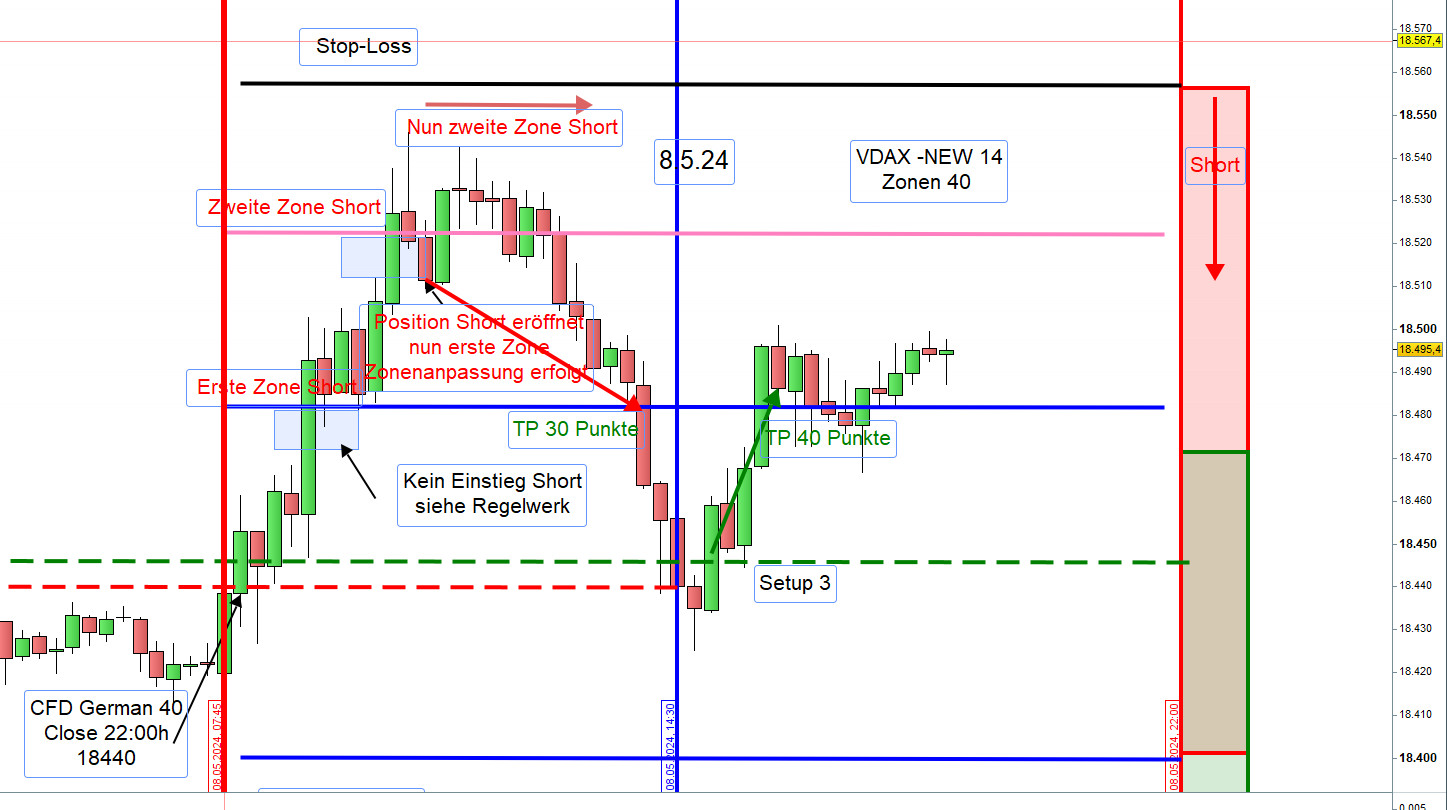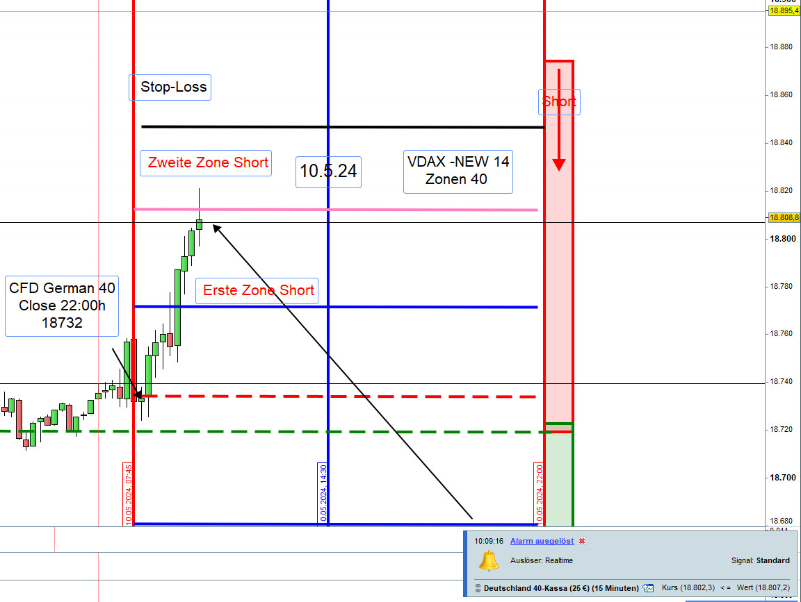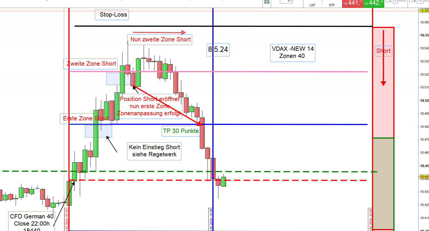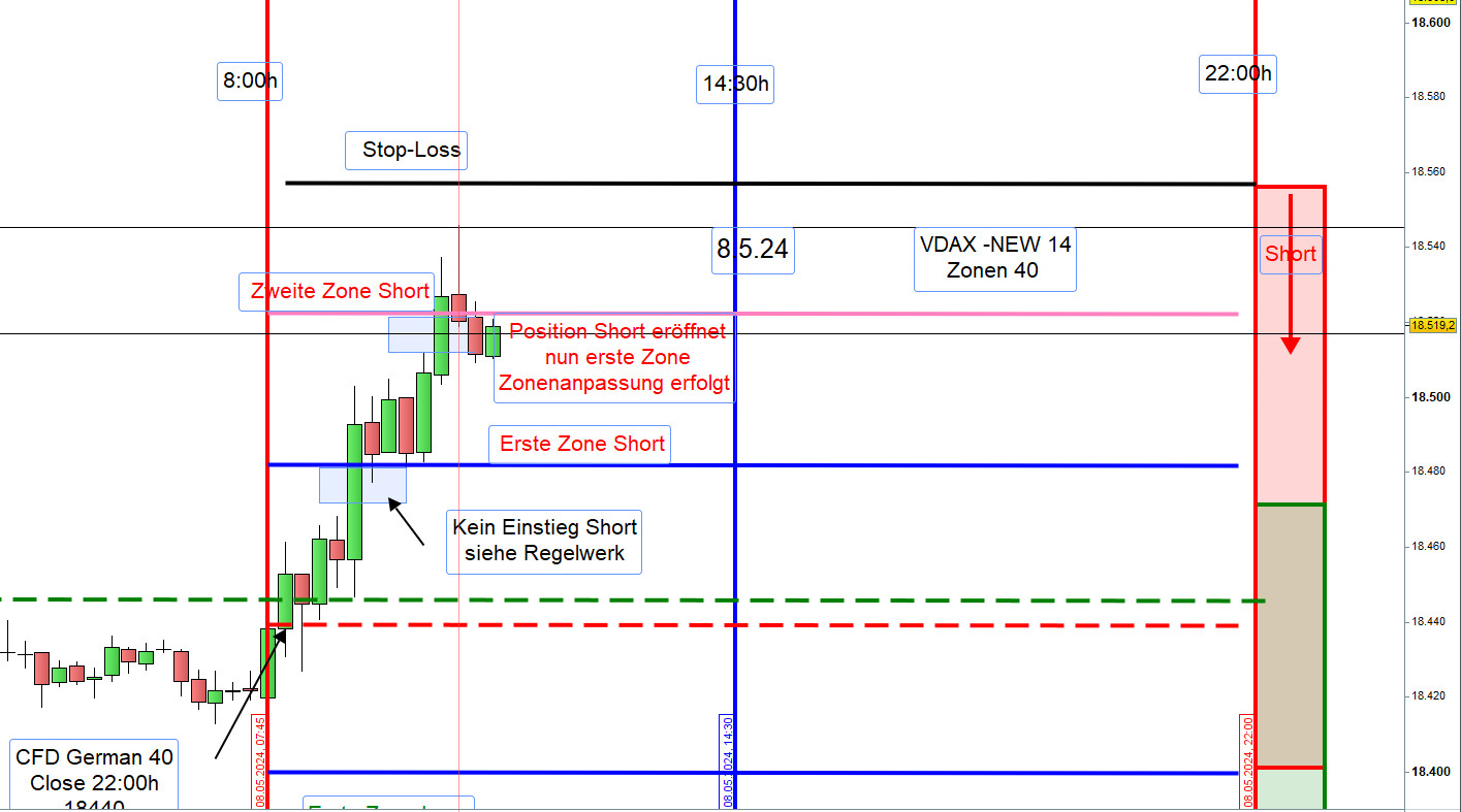 Position Short wurde nun an der ersten Zone eröffnet. Zonenanpassung erfolgt.