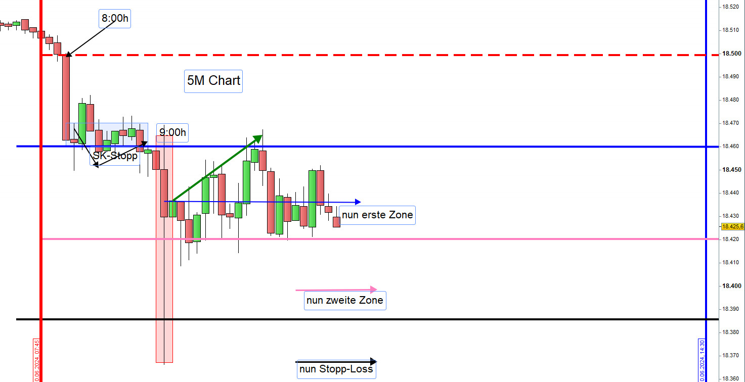 Die Eröffnung der Short-Position mit dem Setup4 am Tageshoch musste auch mit einem SK-Stopp glattgestellt werden- -