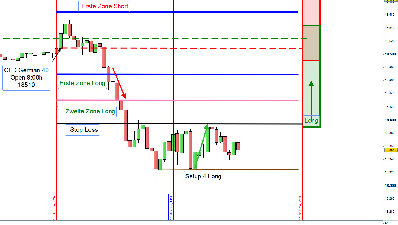 Die Position an der zweiten Zone Long wurde nicht eröffnet und zwar sollte hin zu Mittag im Tandem mit den DOW CFDs gehandelt werden und diese waren sehr negativ. -