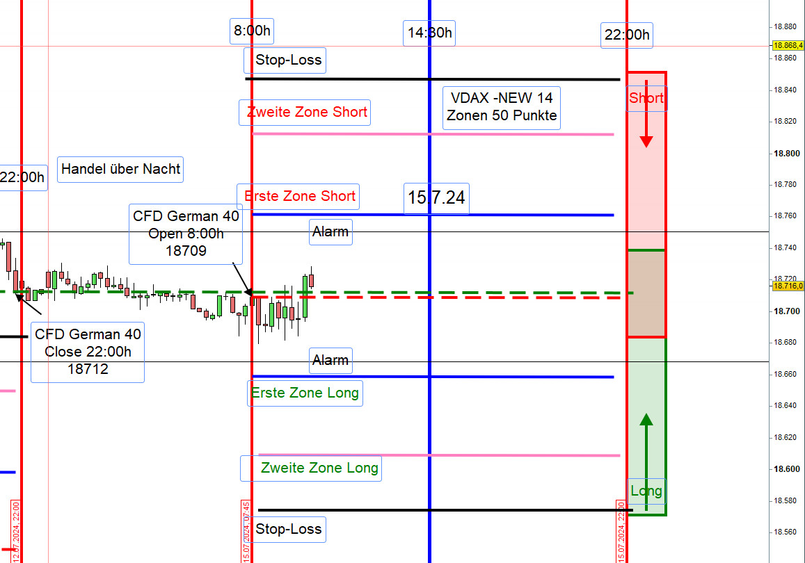 Die Handelsrange des DAX am heutigen Tag wird voraussichtlich größer als üblich sein. Die Unsicherheit durch das Attentat und die bevorstehende Rede von Mr. Powell könnten zu erhöhter Volatilität und ausgeprägteren Bewegungen führen. Ein Abwarten bis zur Rede um 16 Uhr könnte eine kurzfristige enge Handelsrange erzeugen, die sich danach jedoch deutlich ausweiten könnte. Investoren sollten auf plötzliche Bewegungen vorbereitet sein und entsprechende Risikomanagement-Strategien anwenden. -