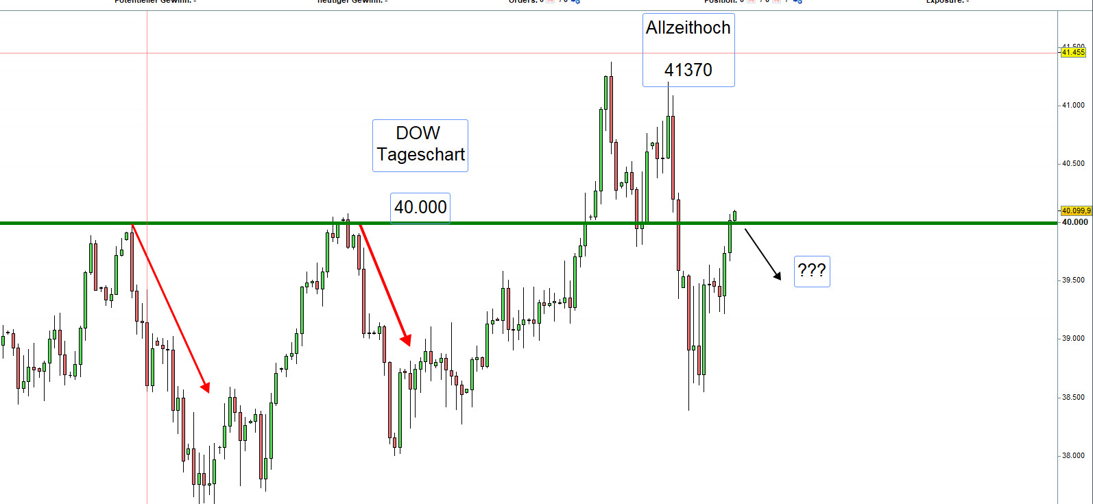 Der DOW notiert seit gestern wieder über 40.000 dies entspricht einer Notierung des DAX von 18.000.