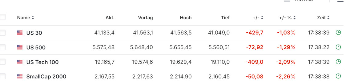 Kein Handel am Nachmittag. Alle US Futures notieren plus 1% im Minus.