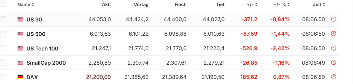 Handel am heutigen Morgen.Vormittag bis 13:00 Uhr: