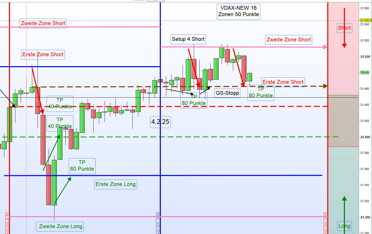—Chart mit Einstieg Long und Zonenanpassung