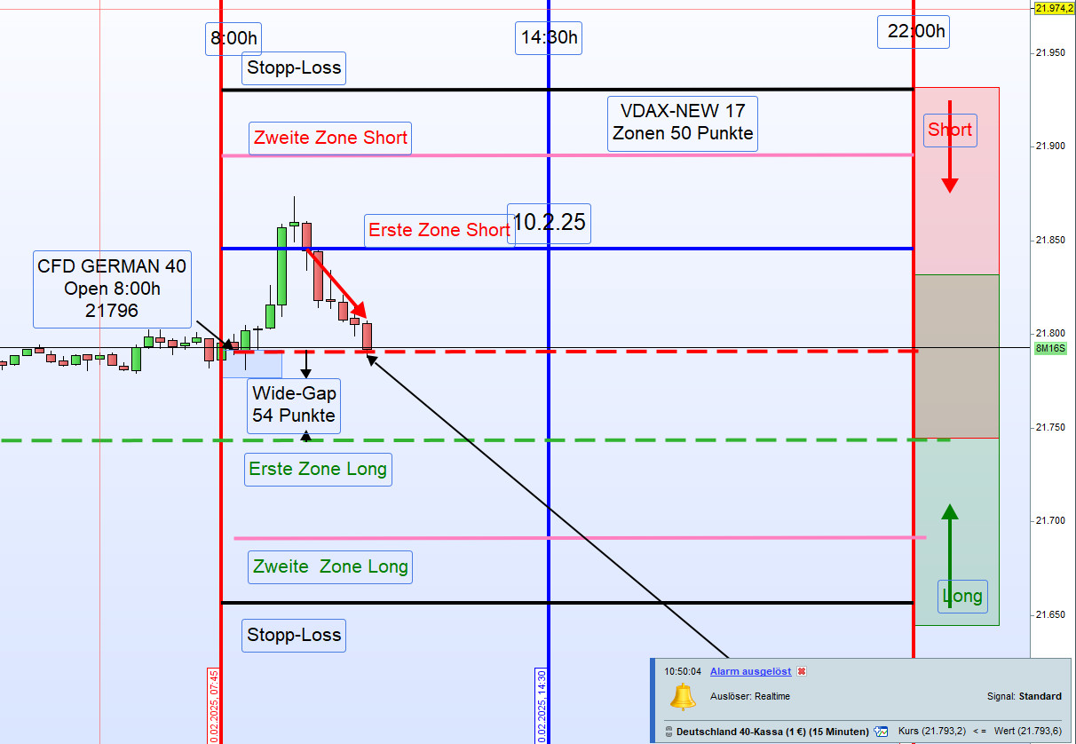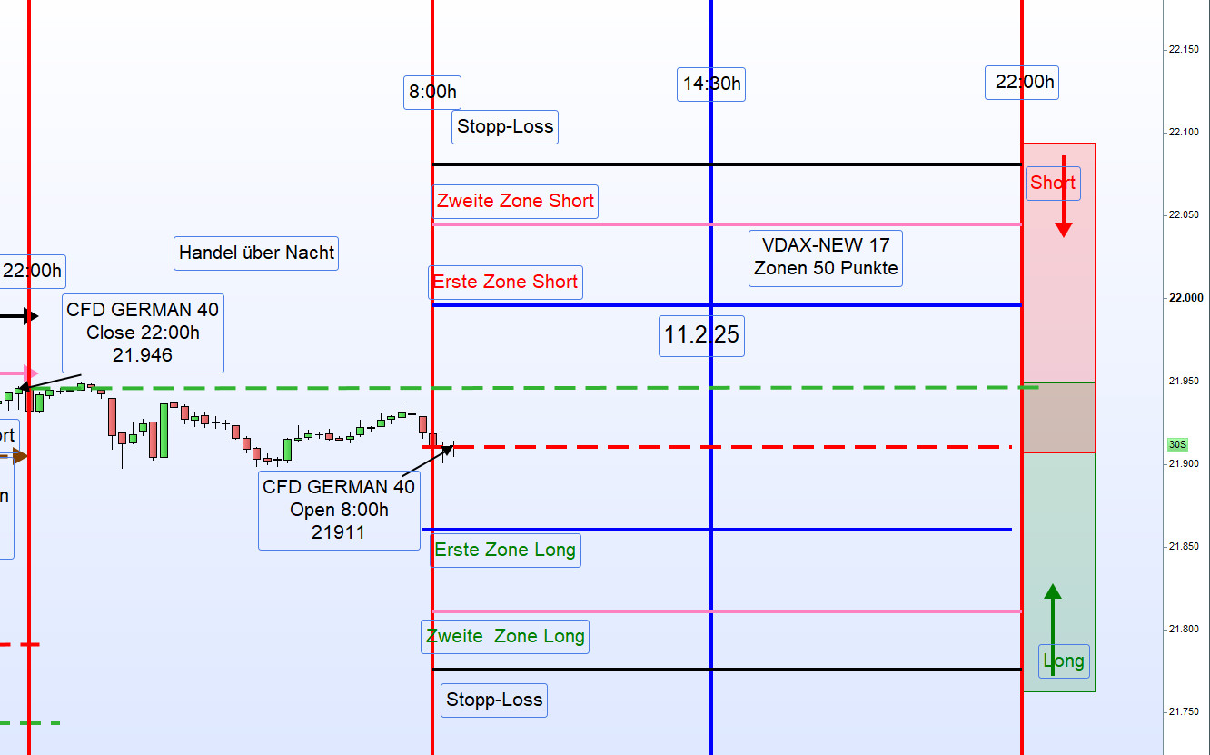Sind diese Voraussetzungen nicht gegeben, dann zuerst Eröffnung der Börse um 9:00h abwarten. Dieser Einstieg ist dann die erste Zone Long.