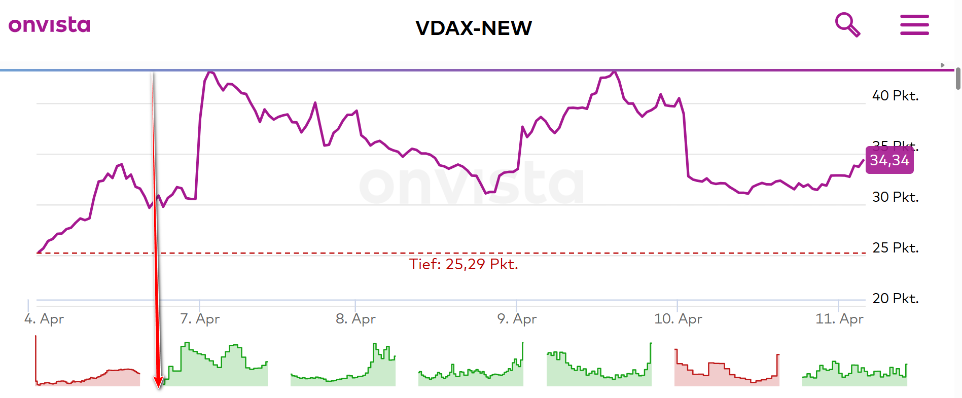 VDAX-NEW sinkt auf 25 – Rückgang der impliziten Volatilität = positiv für Aktien.
