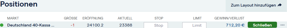 Diese zweite Position lief in den Gewinn und wurde glattgestellt.