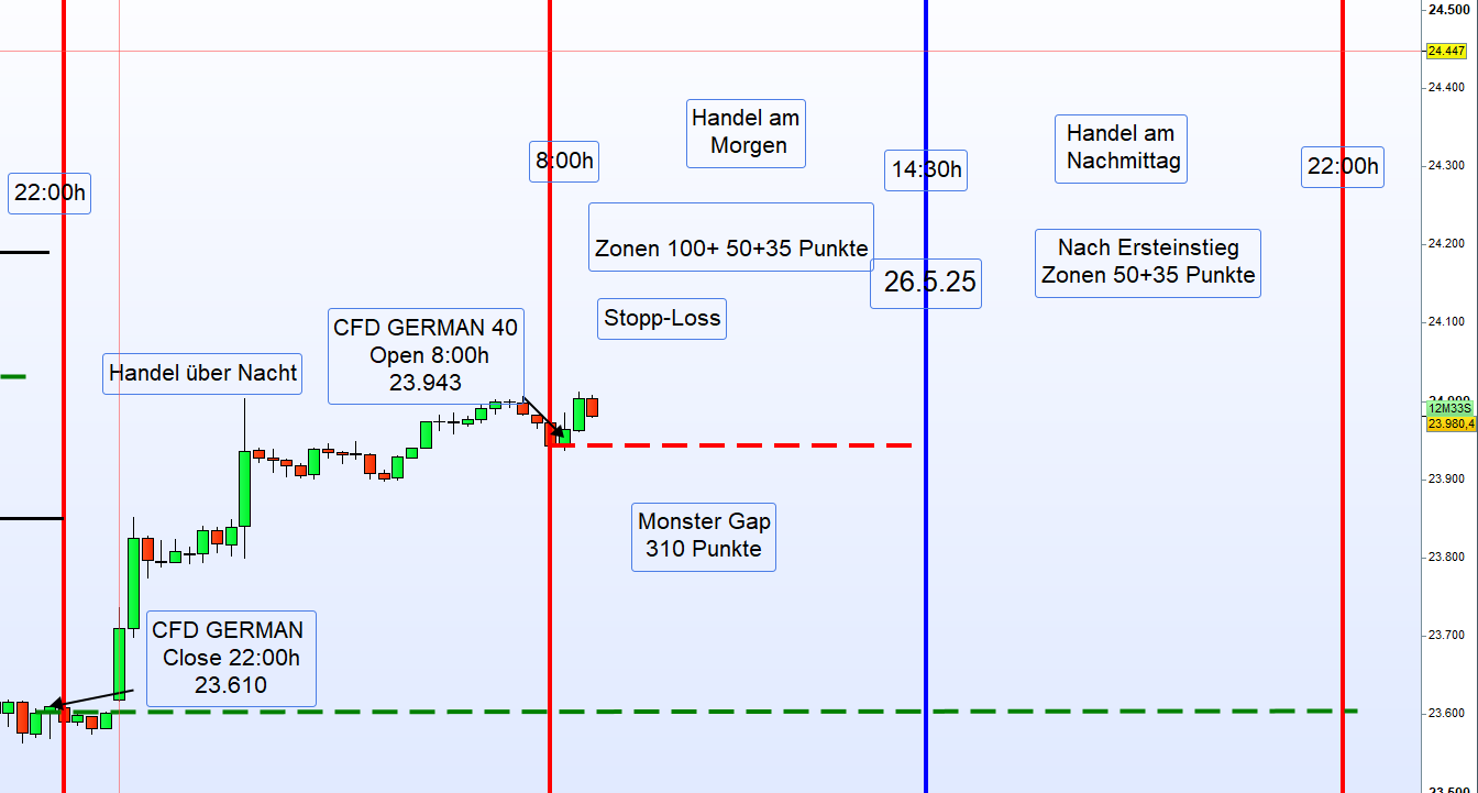 Der DAX CFD German 40 um 22:00 Uhr mindestens 20 Punkte über/unter dem Schlusskurs des Xetra-DAX um 18:00 Uhr notiert.