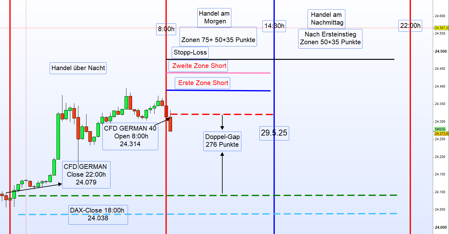 Deshalb stiegen die Futures über Nacht. Der Markt bescherte zur Eröffnung ein Doppel-Gap.