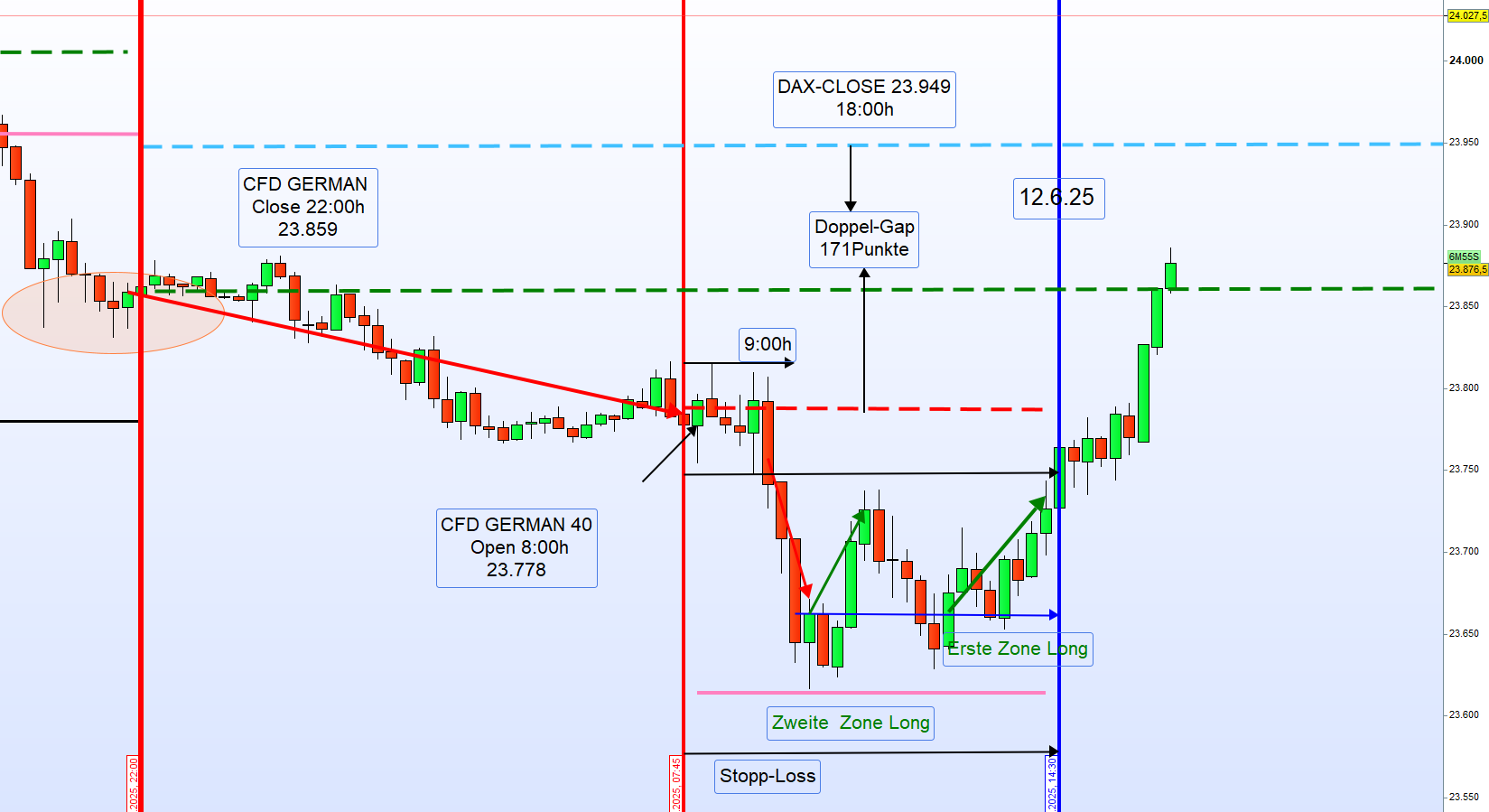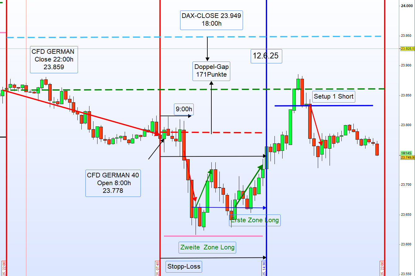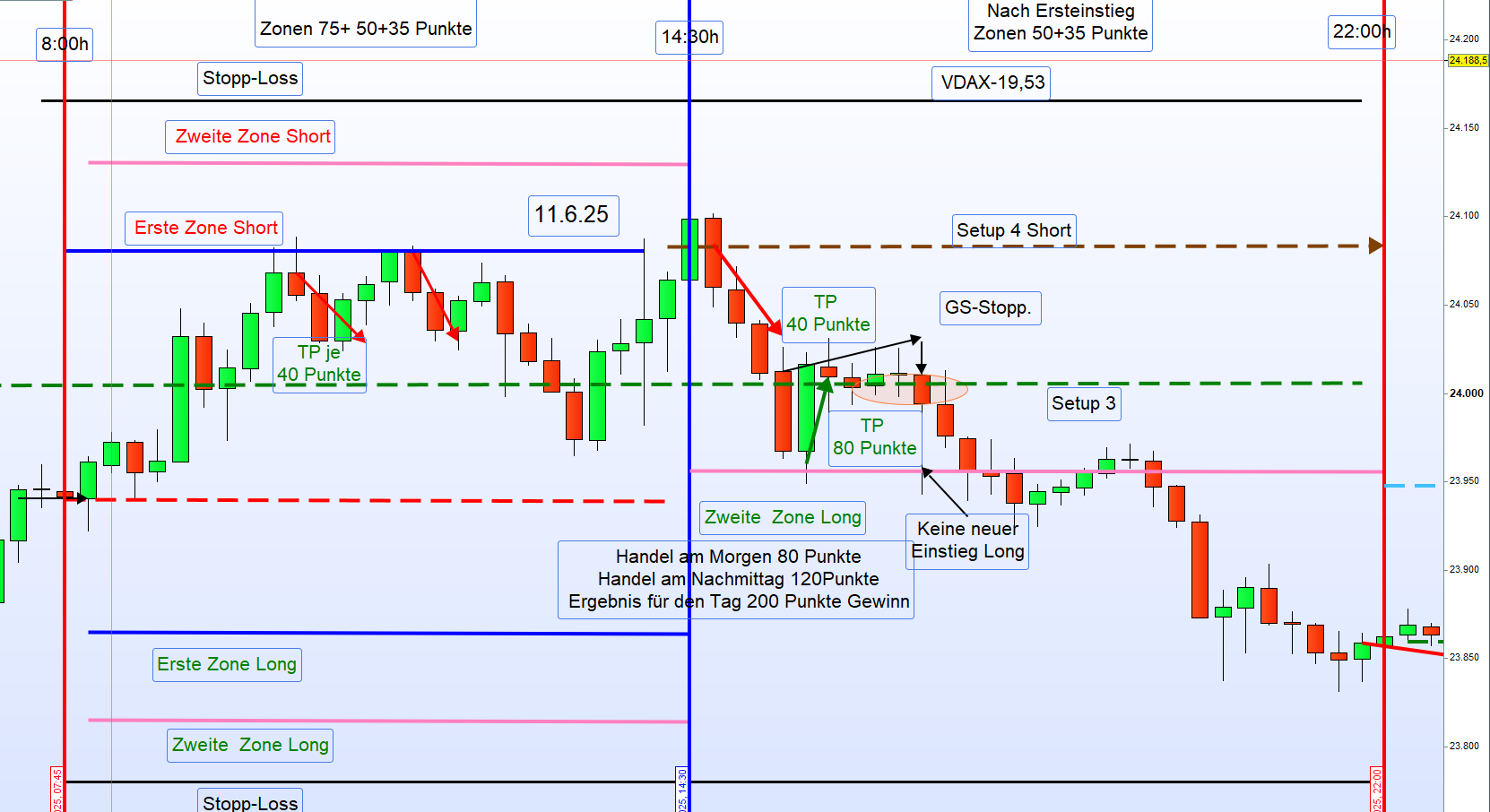 Nachstehend der heutige Handelstag mit erfolgreich umgesetzten Short- und Long-Positionen.