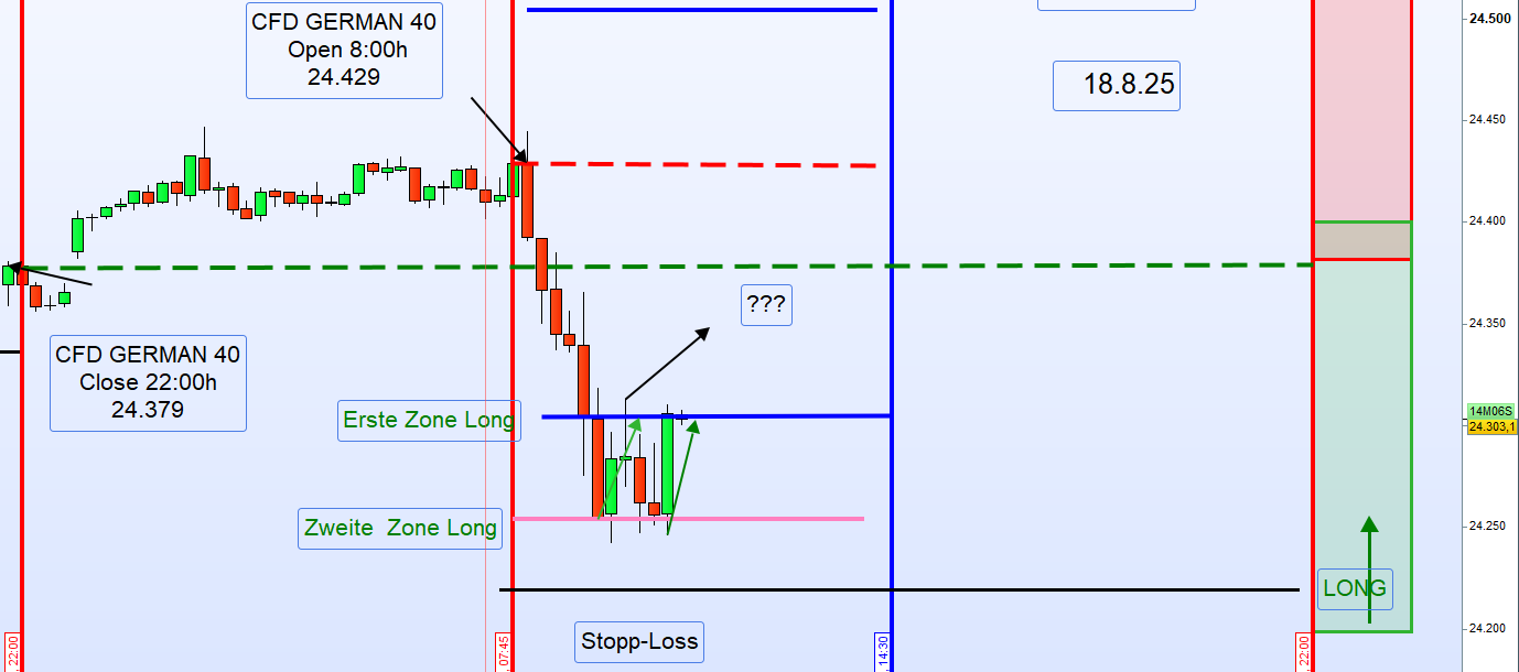 Heute jedoch hätte der Kurs von oben kommend und die Kerze unter der Zonenlinie schließen müssen.
